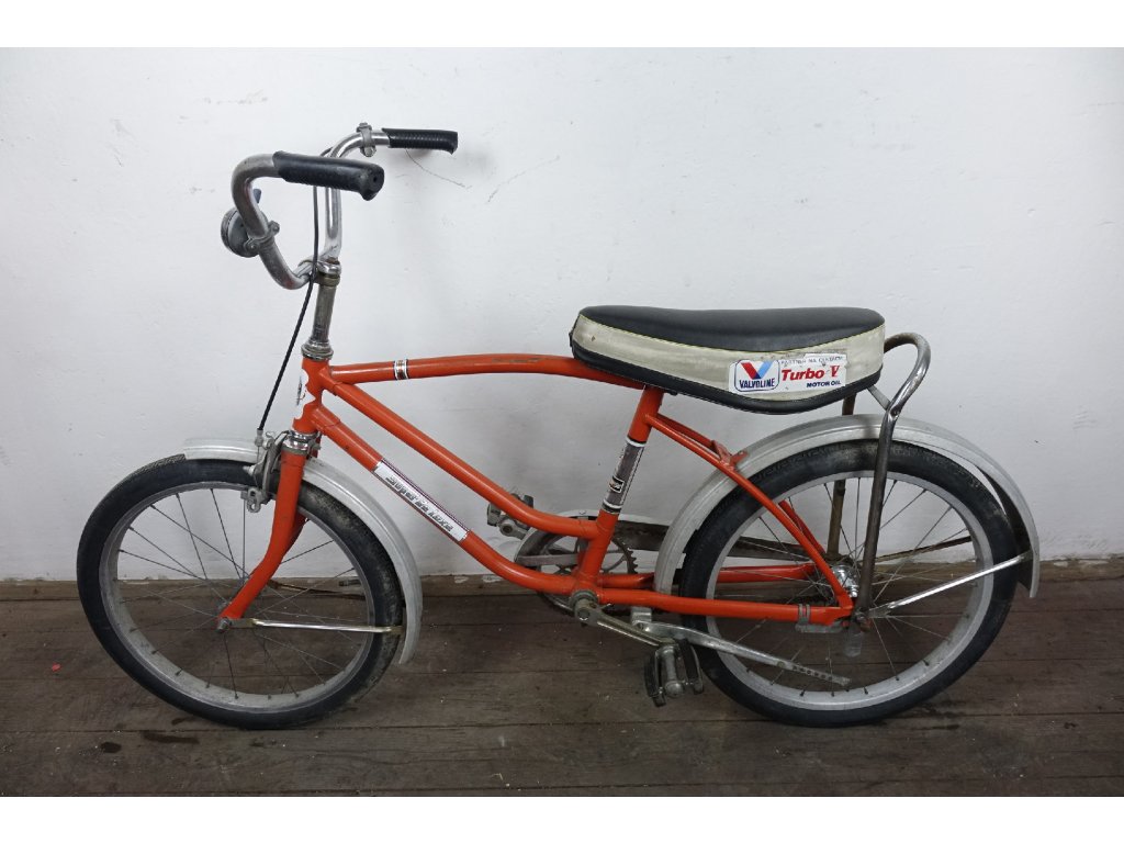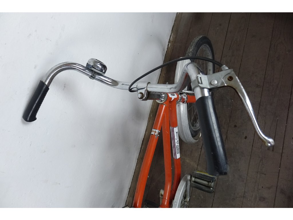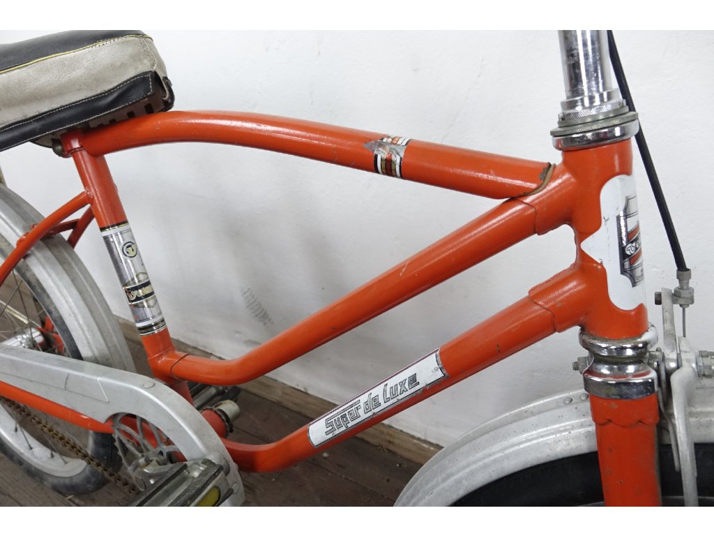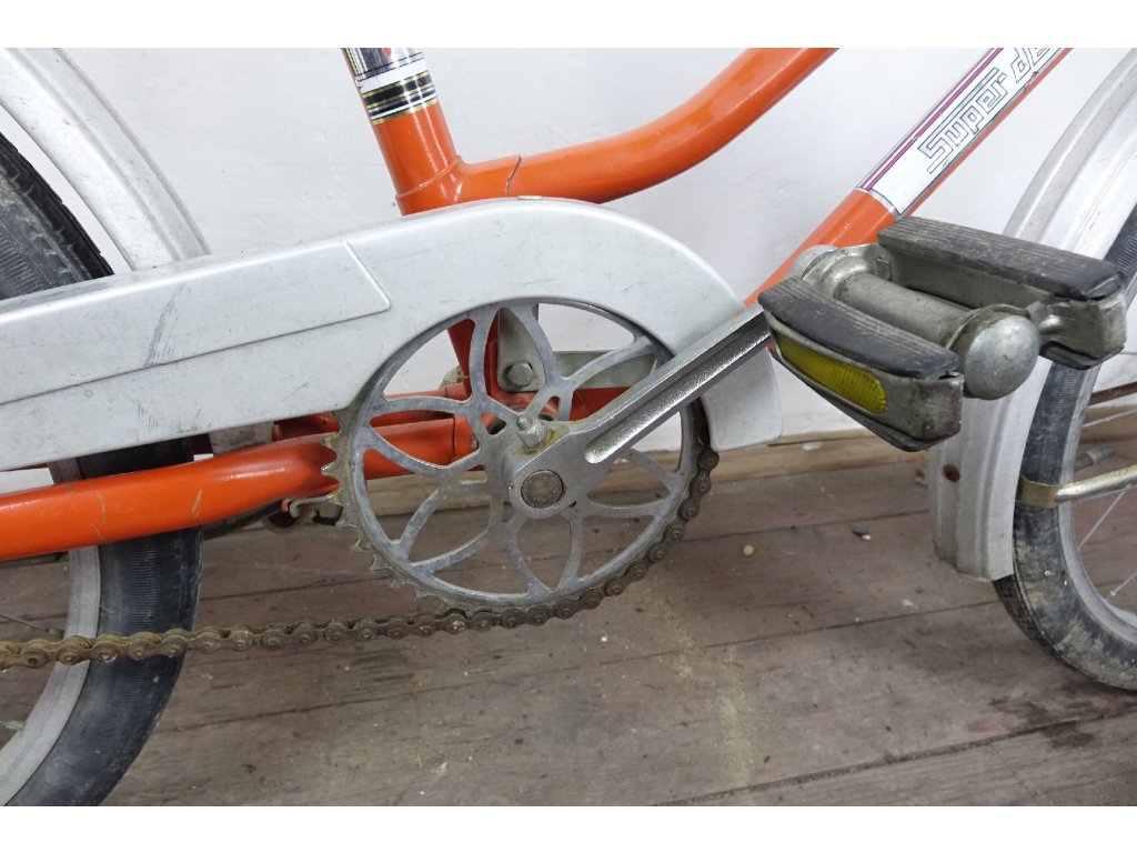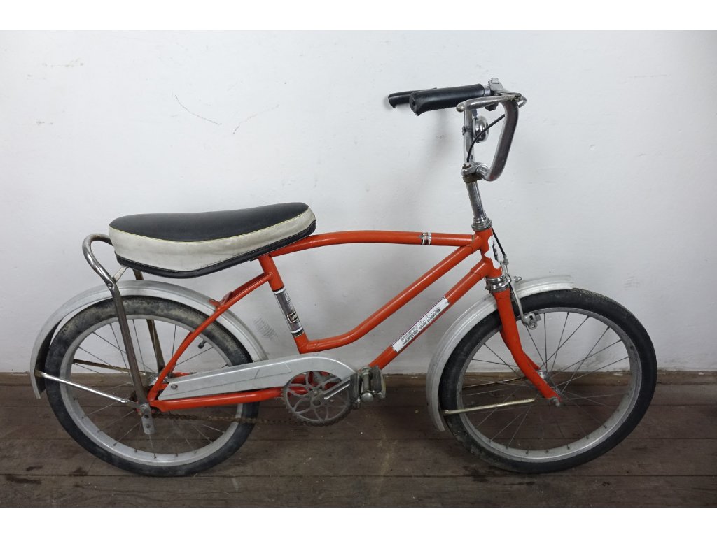 Použité vintage dětské kolo Velamos Super de Luxe cruiser 20" s odnímatelnou horní rámovou trubkou. Velmi hezký, zachovalý nálezový stav. Náboje i kliky bez vůlí, pláště zteřelé.