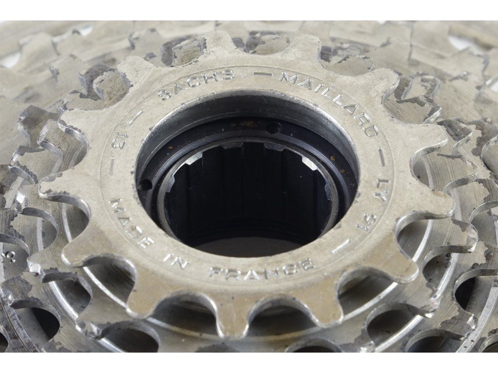 Použité vintage šroubovací 7 kolečko Sachs Maillard. Výroba Francie. Počet zubů 13-15-17-20-24-28-32, velmi dobrý stav.