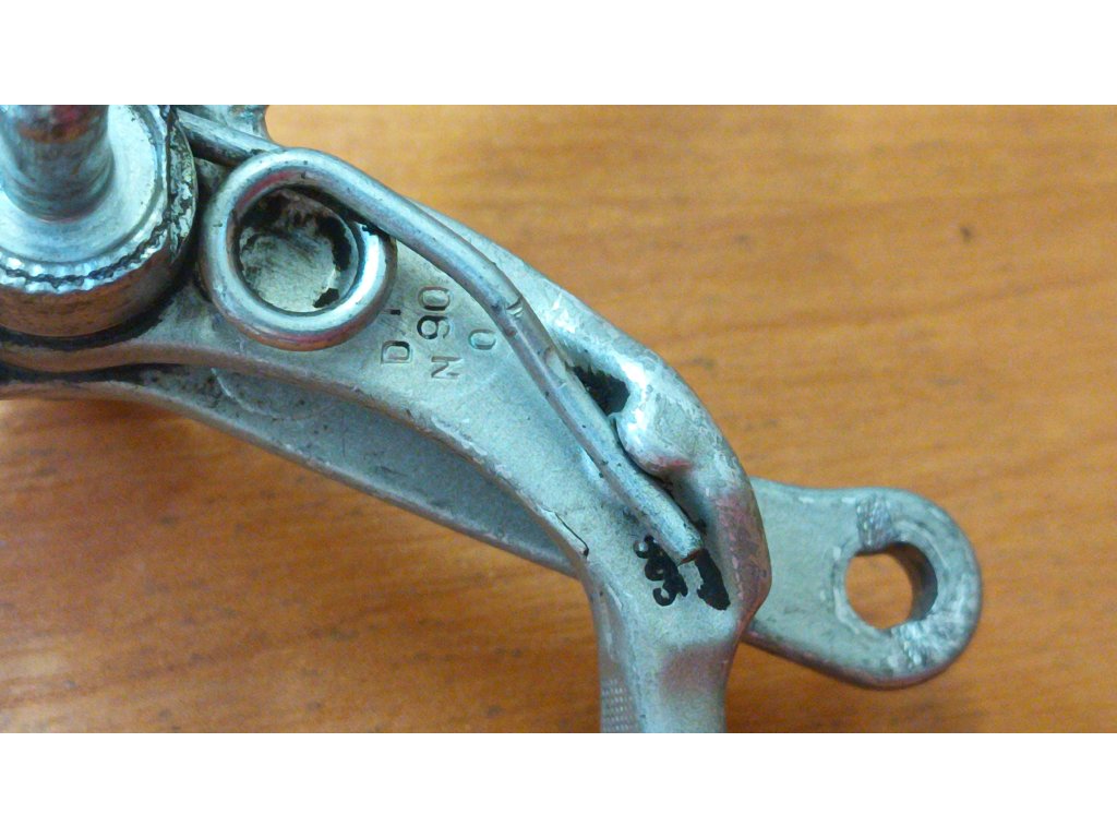 Použitá zadní silniční brzda japonského výrobce Dia-Compe 505. Chybějící komponenty.