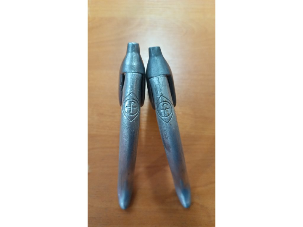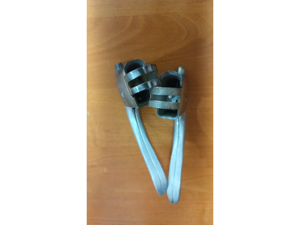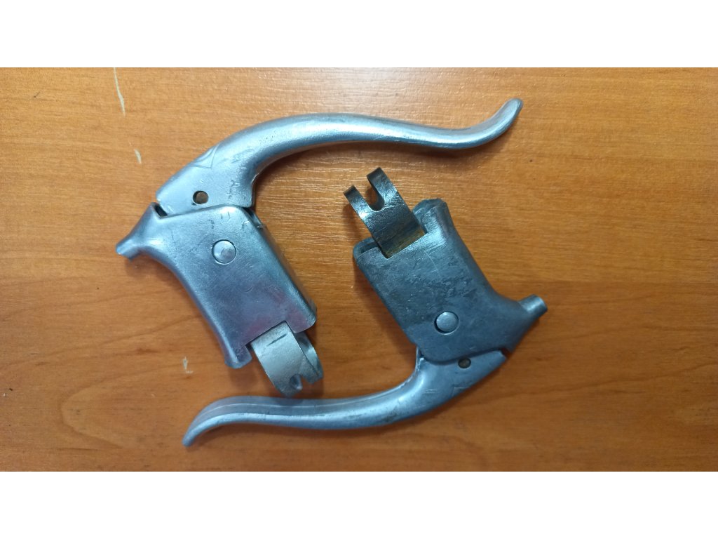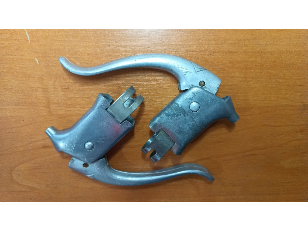 Použité historické brzdové páky Favorit, vyráběno od konce padesátých let minulého století. Funkční. Kousek části ústí bowdenu ulomený viz foto.