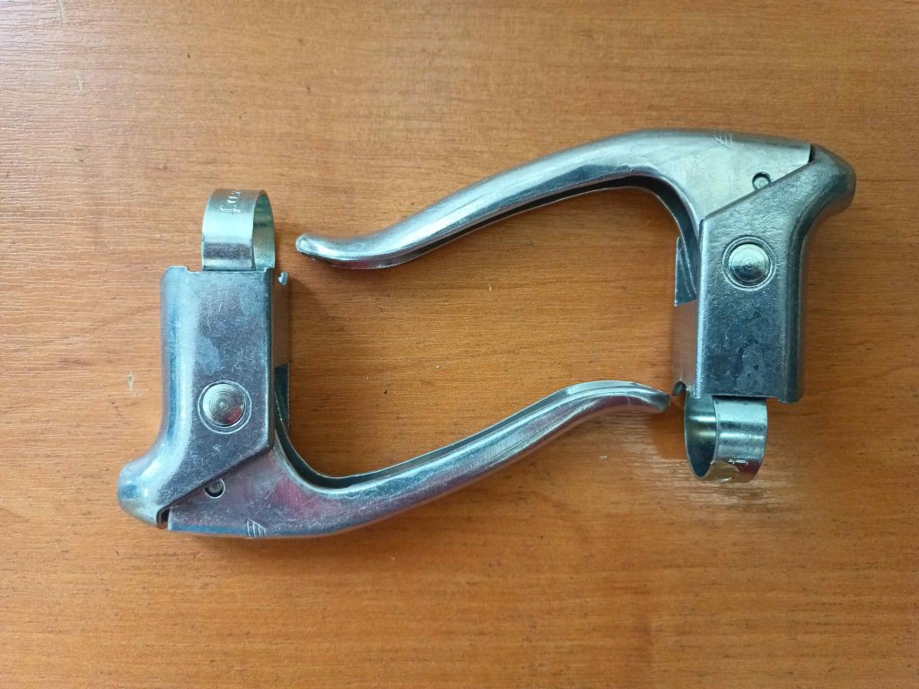 Nepoužité vintage brzdové páky Favorit na turistická silniční kola. Včetně dorazy bowdenů, nejsou na foto.