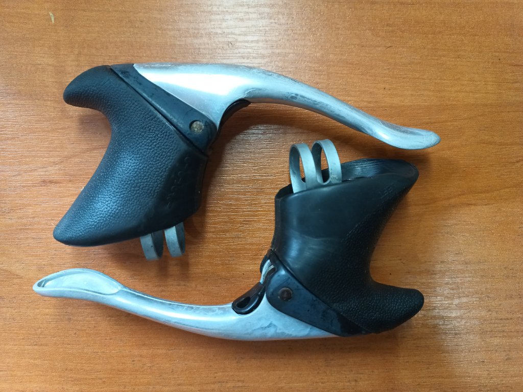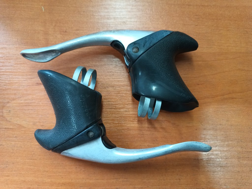 Použité silniční brzdové páky italského výrobce Modolo. Zachovalé, funkční.