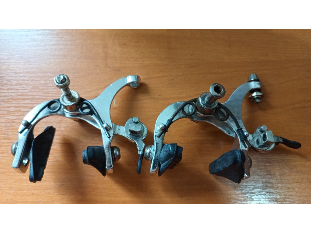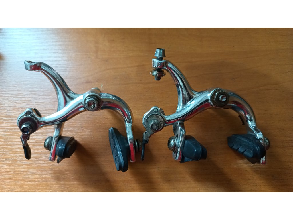 Použité silniční brzdy italského výrobce Gipiemme Azzurro SB 700 z osmdesátých let minulého století. Chybí dorazový šroub k lanku.