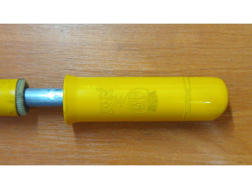 Použitá hustilka italského výrobce Silca Impero, velmi hezká a zachovalá, dobře drží tlak, délka nestlačené pumpy 51 cm.
