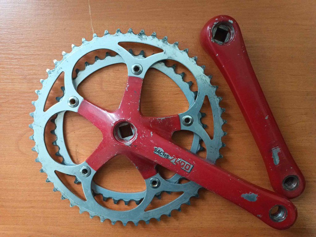 Použité vintage silniční kliky Sachs 7000, 52/42 zubů, délka 170 mm, stav viz foto.