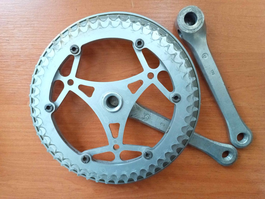 Použité vintage hliníkové silniční kliky německého výrobce Thun, délka 170mm, počet zubů 53/47.