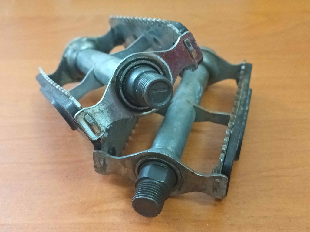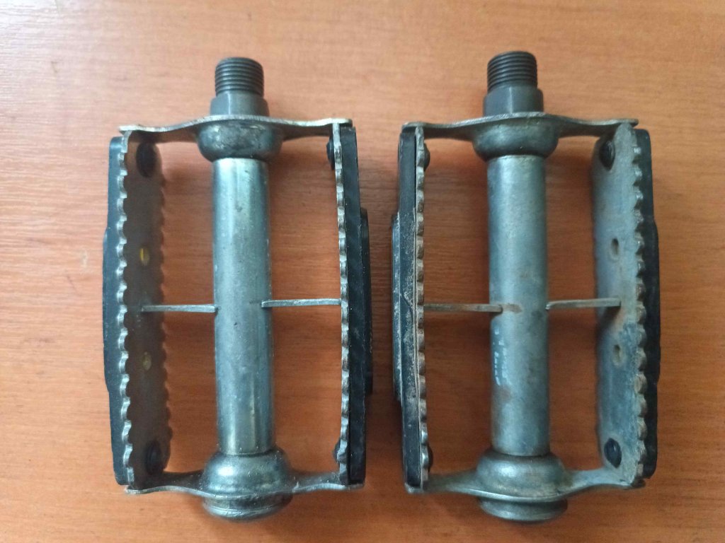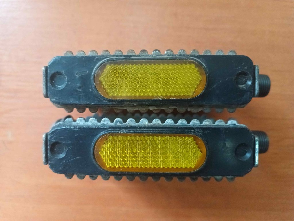 Použité vintage pedály Favorit s černým plastem a odrazkami, turistický model. Výroba 60.-80. léta minulého století. Funkční, bez vůlí, vzhled viz foto.