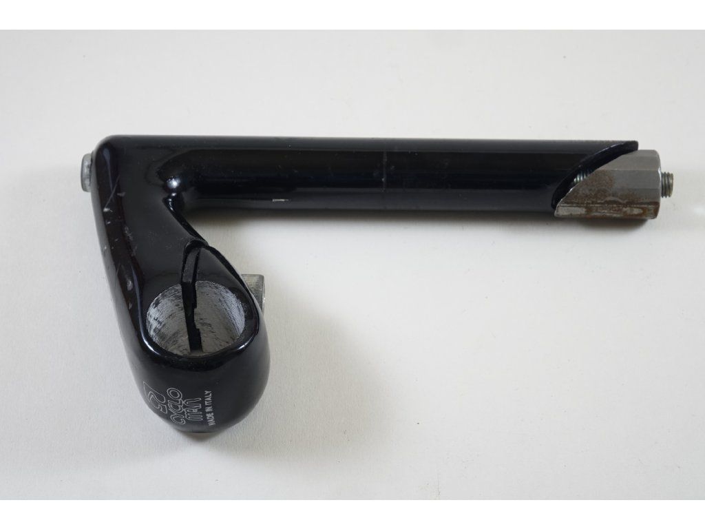 Použitý hliníkový představec italského výrobce Cyclo Man, průměr trubky cca 21,8 mm, pro řídítka 25,4 mm, délka 70 mm. Stav viz foto.