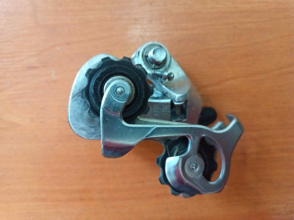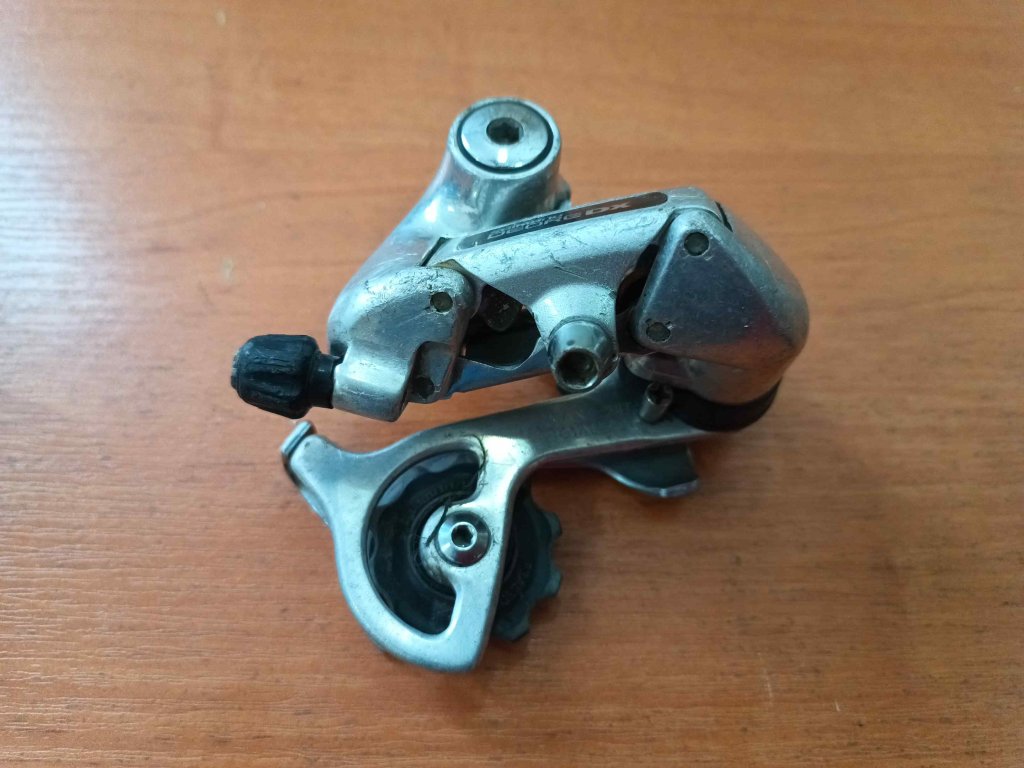 Použitá vintage MTB přehazovačka Shimano Deore DX (RD-M650-SS). Označení "SS" znamená krátké ramínko. Určena pro 6-7 rychlostí. Zachovalá, kompletní, funkční. Vyráběna od roku 1990.