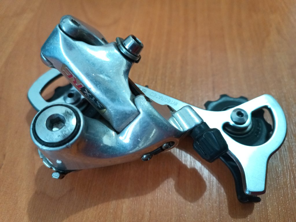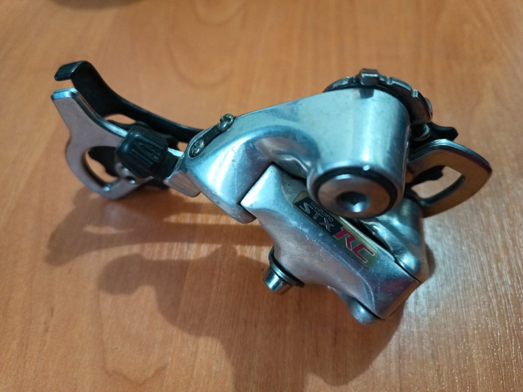 Použitá retro velmi kvalitní přehazovačka Shimano STX RC (RD-MC38), 8SIS (8rychlostní). Velmi zachovalý, hezký stav. Vyrobeno v Japonsku.