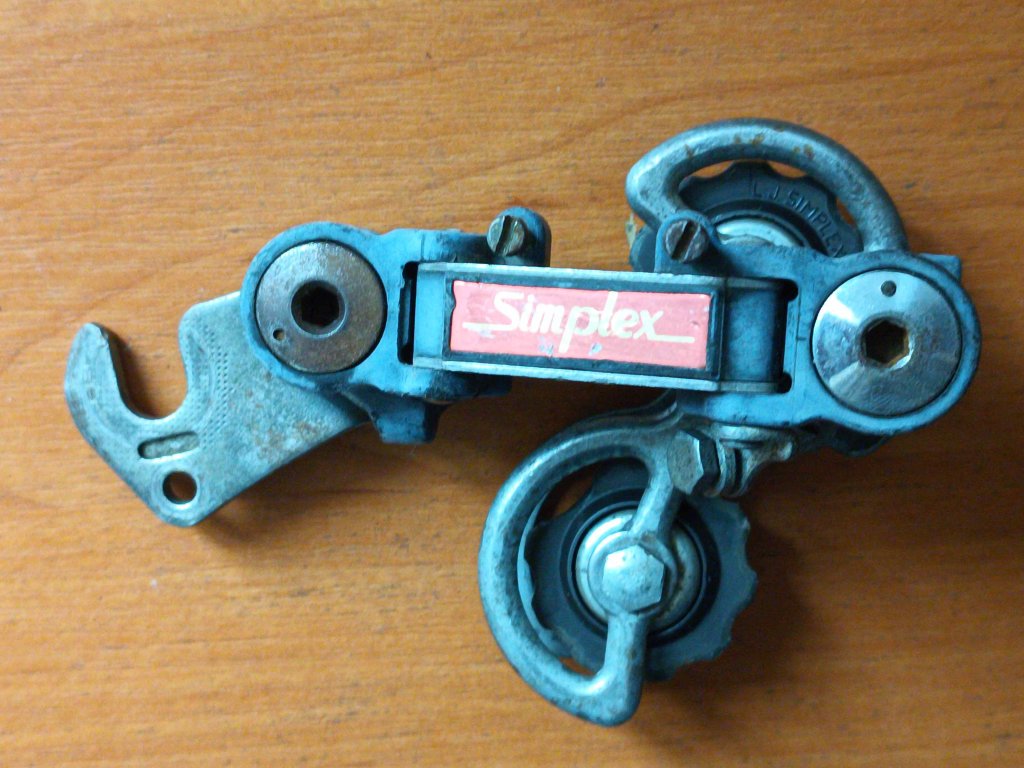 Použitá vintage přehazovačka francouzského výrobce Simplex Prestige ze 60./70. let minulého století. Materiál - ocel/hliník/plast. Zvládá 6 rychlostních stupňů. Známky koroze viz foto.