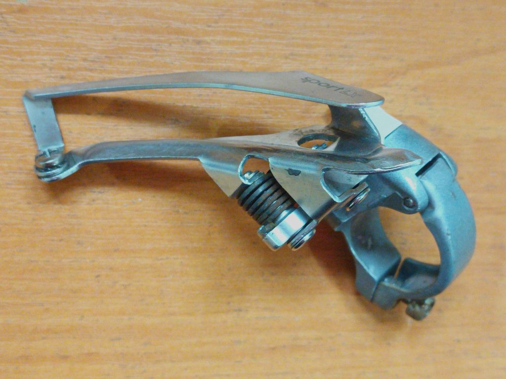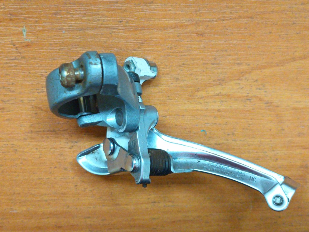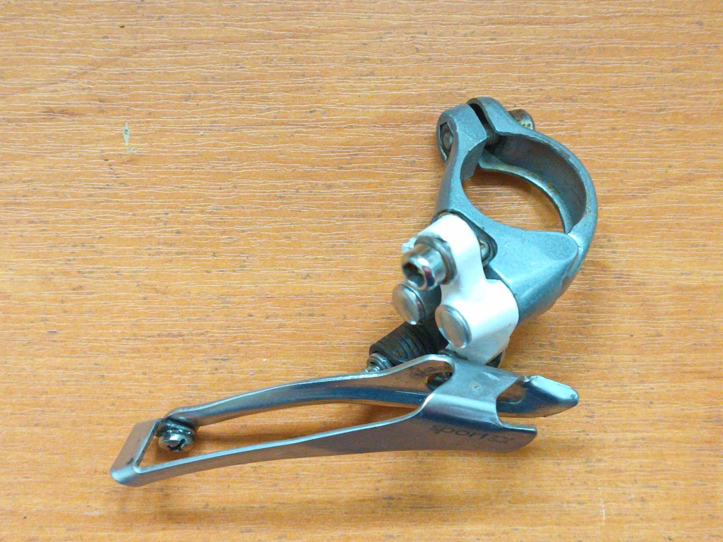 Použitý vintage přesmykač Shimano Sport LX (FD-A452) pro dvojpřevodník, na objímku o průměru 28,6 mm. Spodní tah. Známky koroze viz foto, kompletní, funkční.