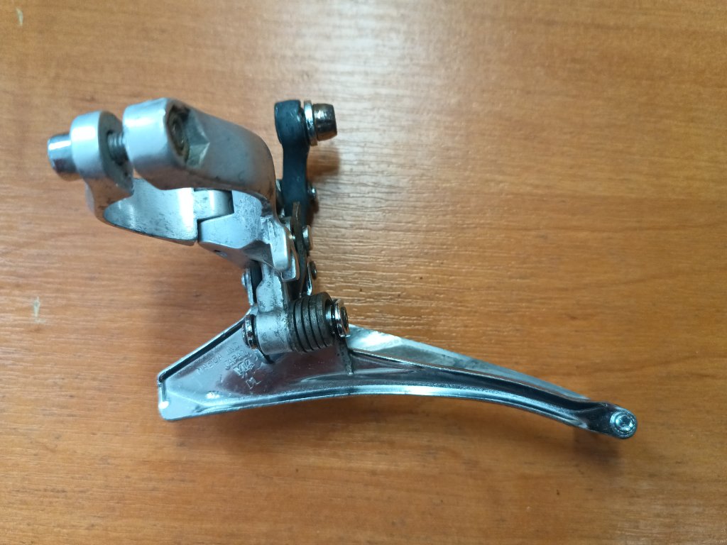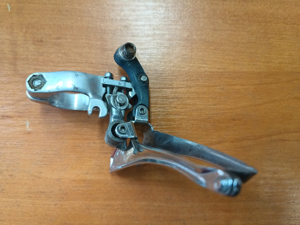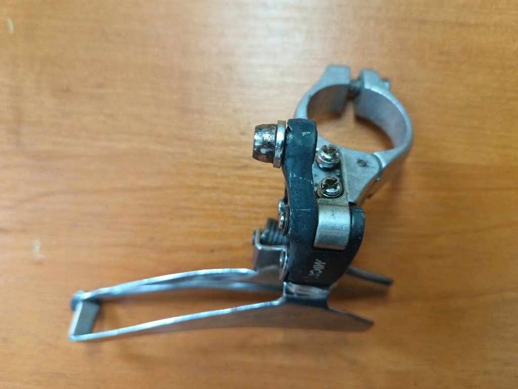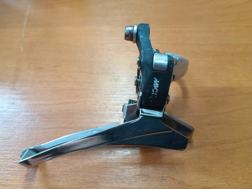 Použitý přesmykač na silniční kolo italského výrobce Miche (vyrobeno v Japonsku firmou Suntour). Vyráběno na konci devadesátých let minulého století. Upnutí na rámovou trubku. Spodní tah. Zachovalý stav, funkční, kompletní.