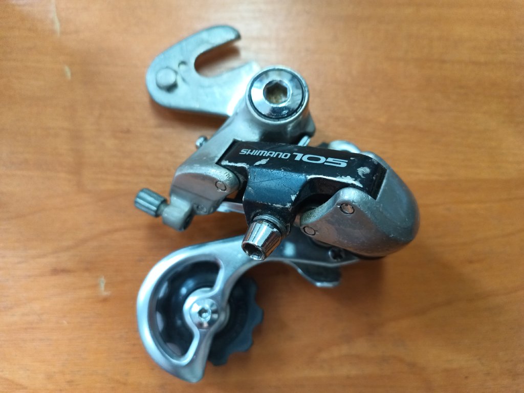 Použitá přehazovačka na silniční kolo Shimano 105 (RD-1050). Určena pro 6 rychlostních stupňů, ale zvládne pravděpodobně i 8 kolečko. Stav viz foto, kompletní, funkční.