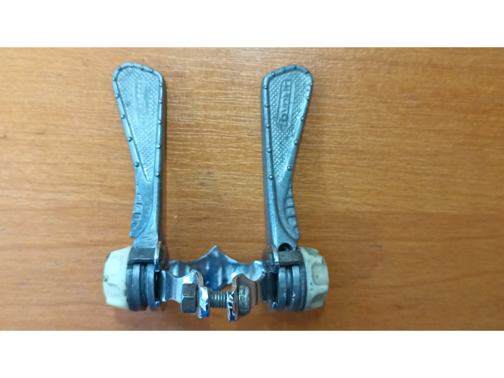Použité historické řadicí páčky Favorit z 60. let minulého století. Užívaly se na kolech Favorit F1, F12. Zachovalé, funkční.