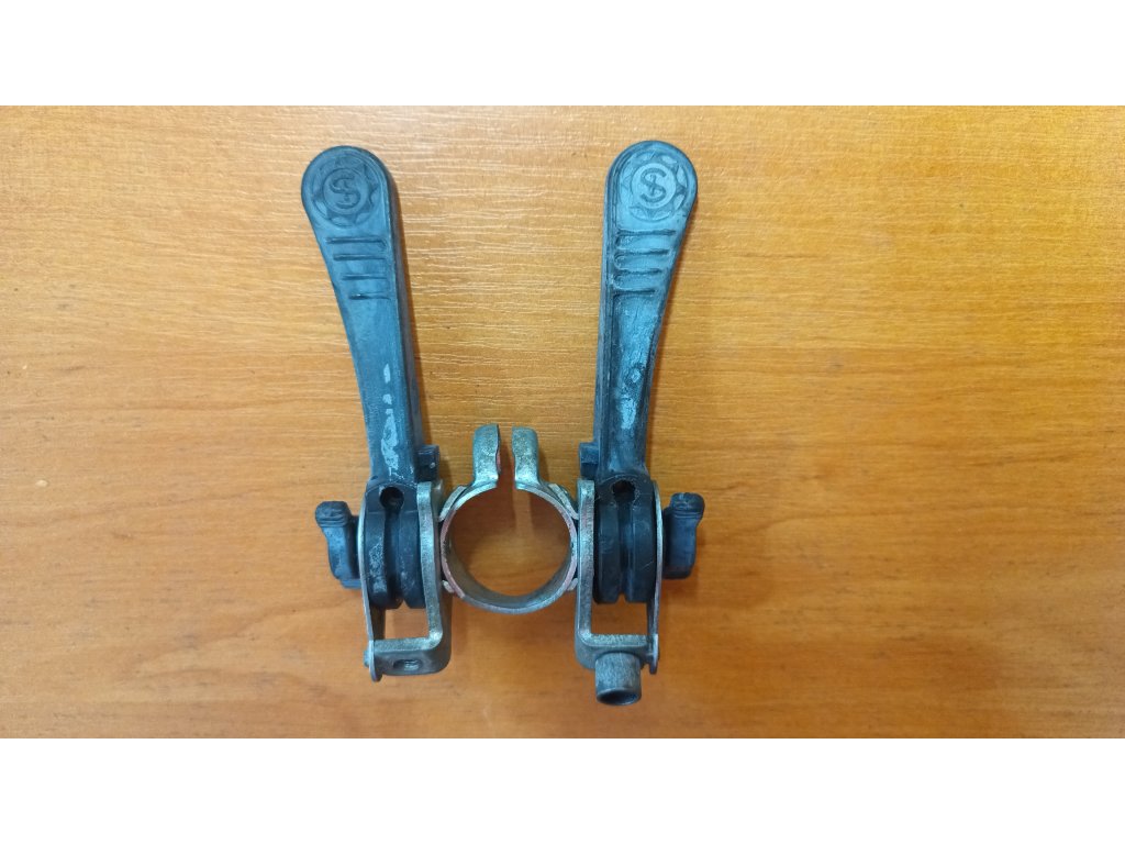 Řadící páčky Simplex Prestige, výroba Francie, novější typ 1981-84. Funkční, chybí jeden doraz bowdenu.