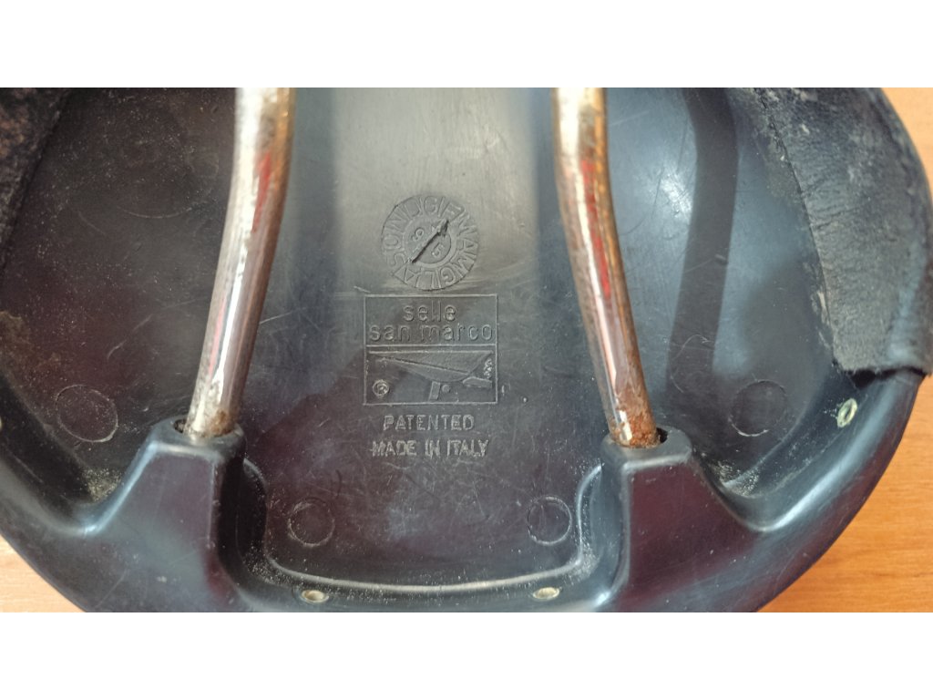 Použité legendární sedlo italského výrobce San Marco Rolls. Známky používání viz foto, stále velmi hezké.