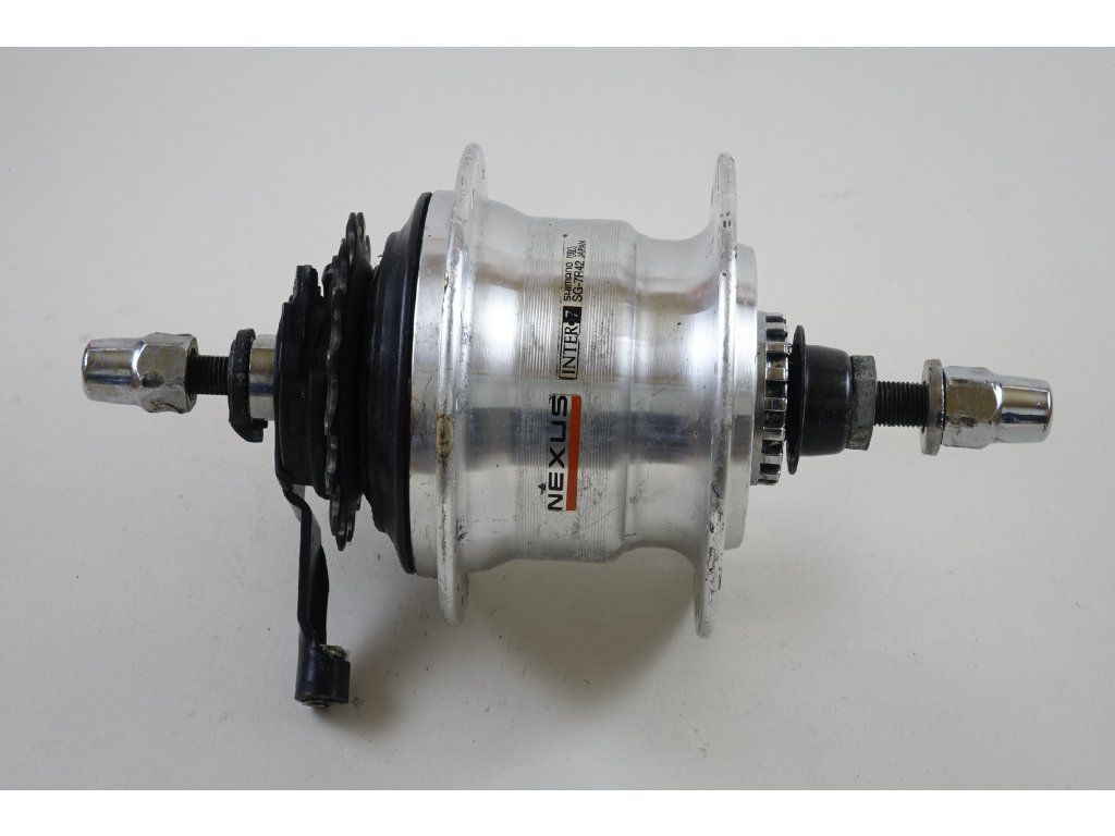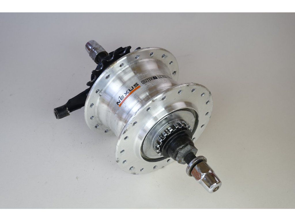 Použitý zadní náboj Shimano Nexus Inter 7 SG-7R42 s 7-stupňovým řazením, 36 děr. Bez řadiče. Velmi zachovalý stav.