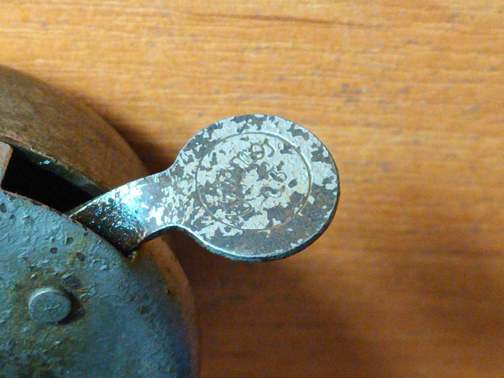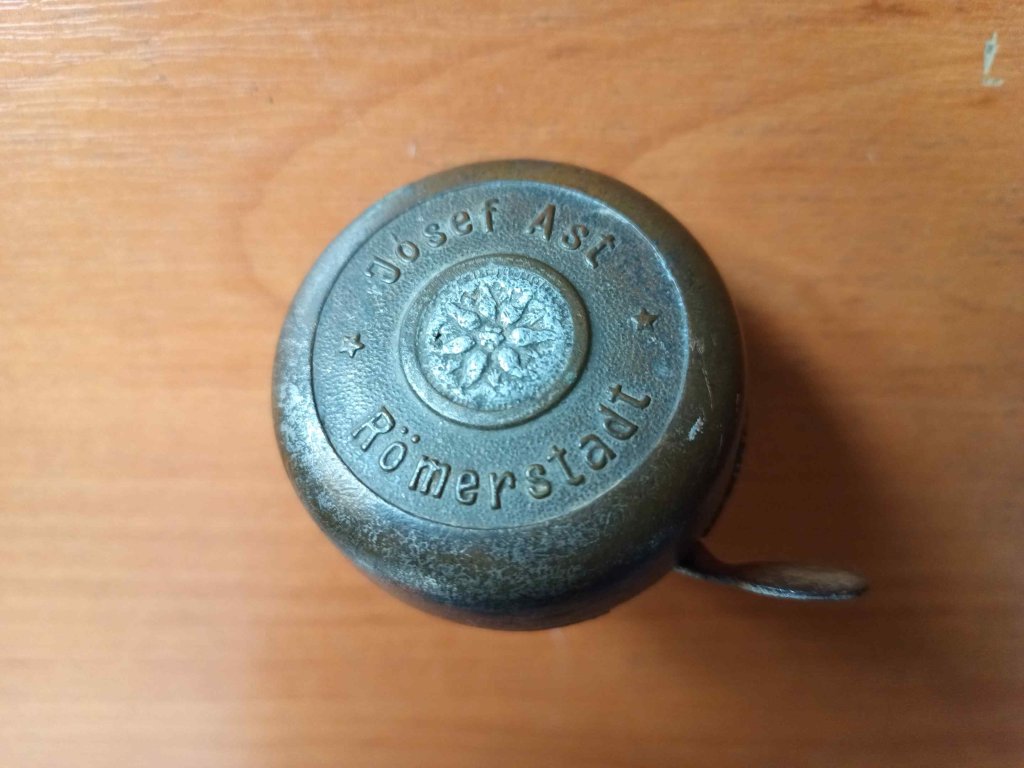 Použitý krásný historický zvonek německého výrobce Scharlach, zřejmě z doby před 2. sv. válkou. Zvonek není celý originální, páčka - Velamos, ostatní nejisté. Funkční, zvoní hezky.