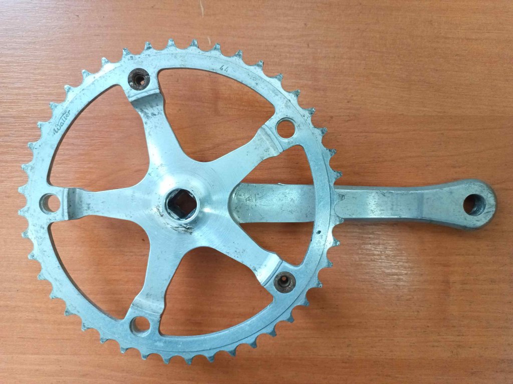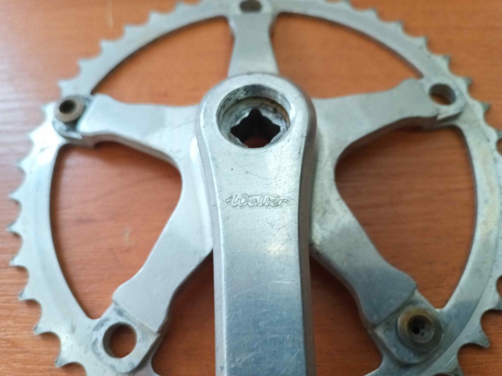 Použitá neúplná pravá klika Walter, 44 zubů, chybí větší převodník s 54 zuby, stav viz foto.