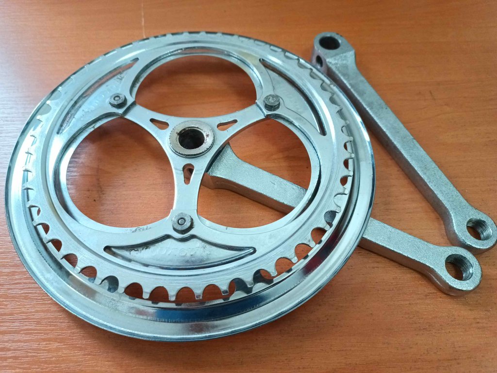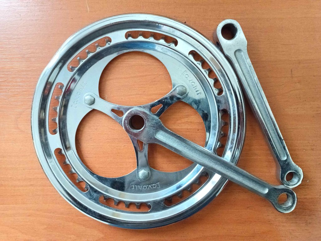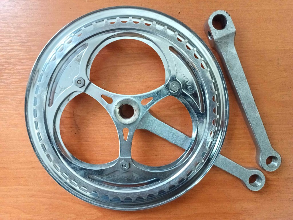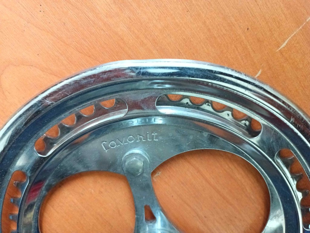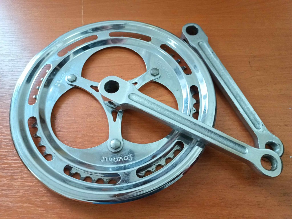 Použité velmi zachovalé kliky Favorit s krytem řetězu, 48 zubů, délka 170mm, s klínkovým uchycením. Kryt je částečně prohnutý viz foto.