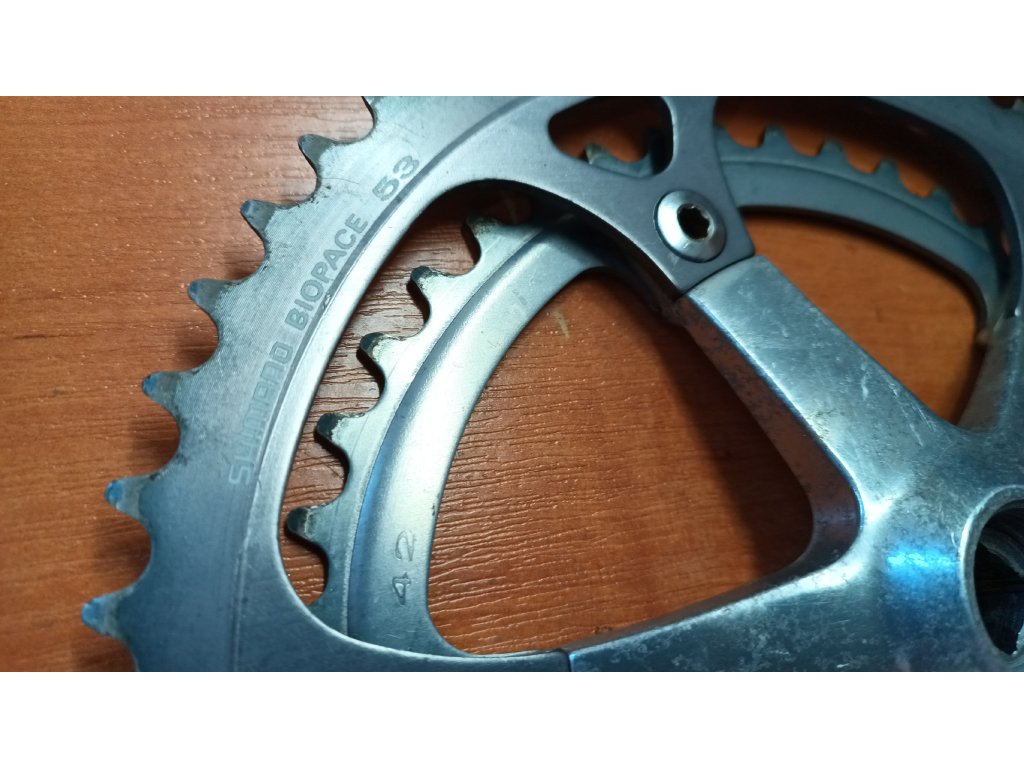Použité silniční kliky Shimano 105 biopace FC-1051, délka 170mm, počet zubů 42-53.