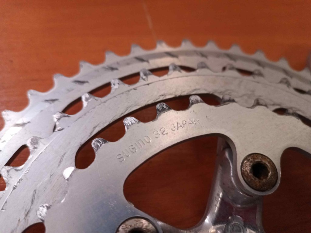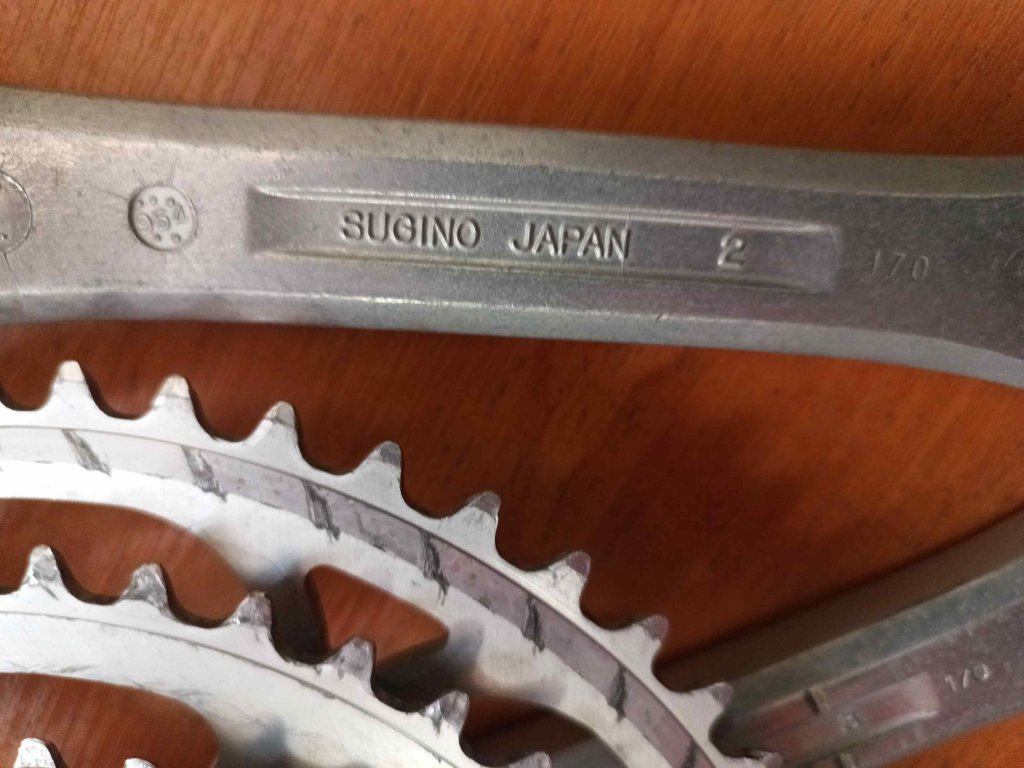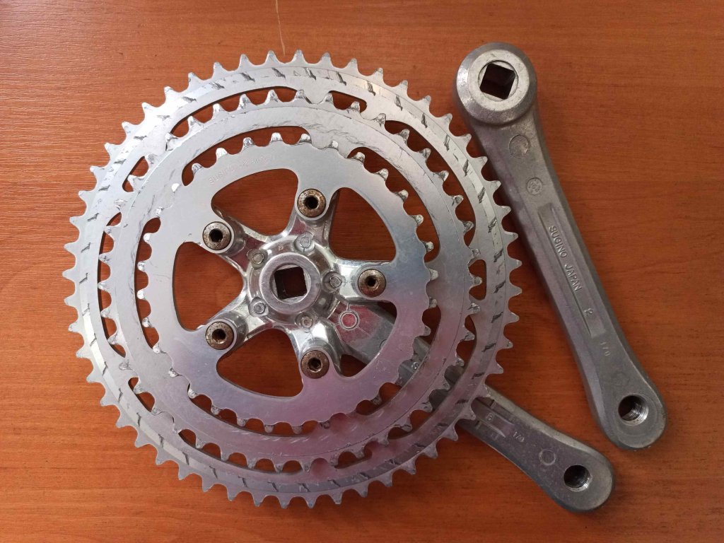 Použité vintage kliky japonského výrobce Sugino MP, délka 170 mm, 52/42/32 zubů.
