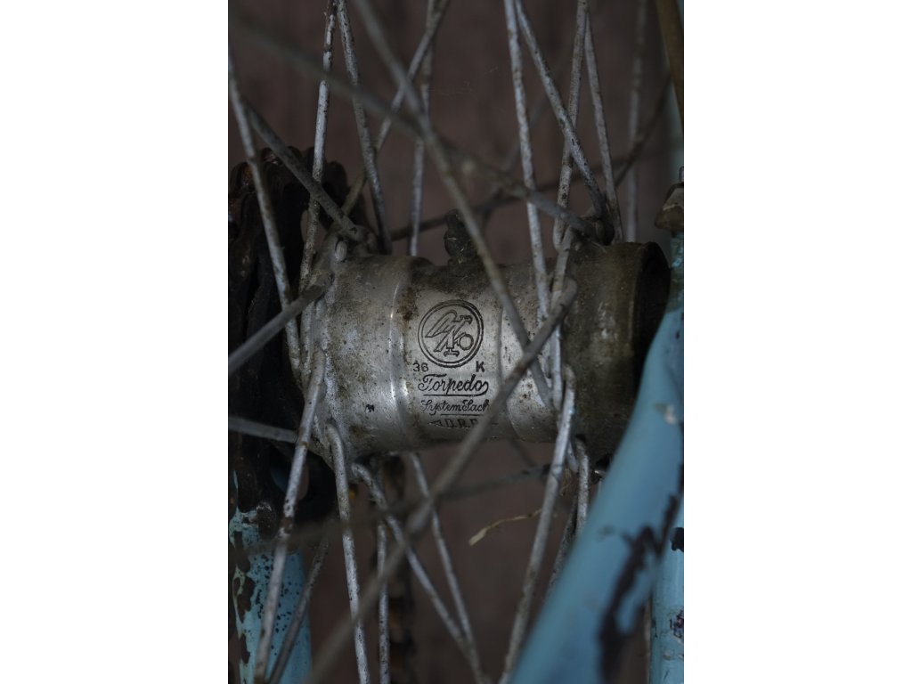 Použité historické kolo rokycanského výrobce Tripol Gigant, zřejmě z 30. let minulého století, náboj Sachs z roku 1936. Nálezový stav.
