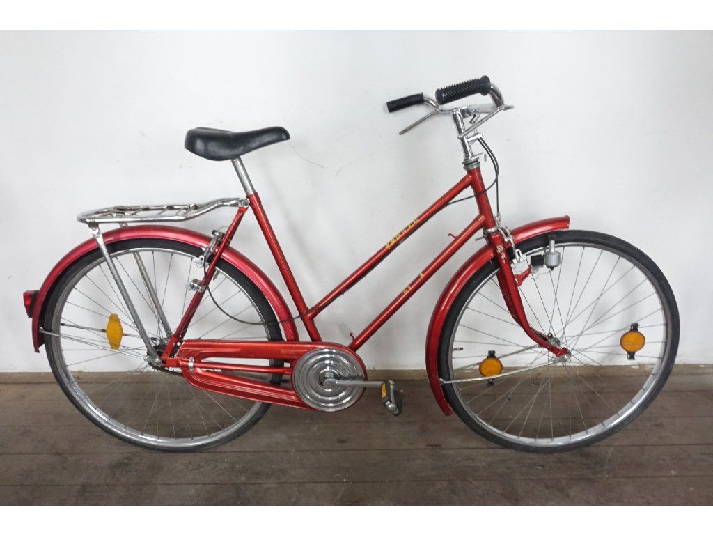 Použité zajímavé vintage dámské kolo zřejmě západoněmeckého výrobce 28", ocelový rám 56 cm. Nálezový stav, bez servisu, aktuálně nepojízdné. V nábojích a středovém složení jsou mírné vůle, pláště jsou zteřelé.