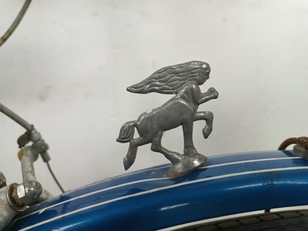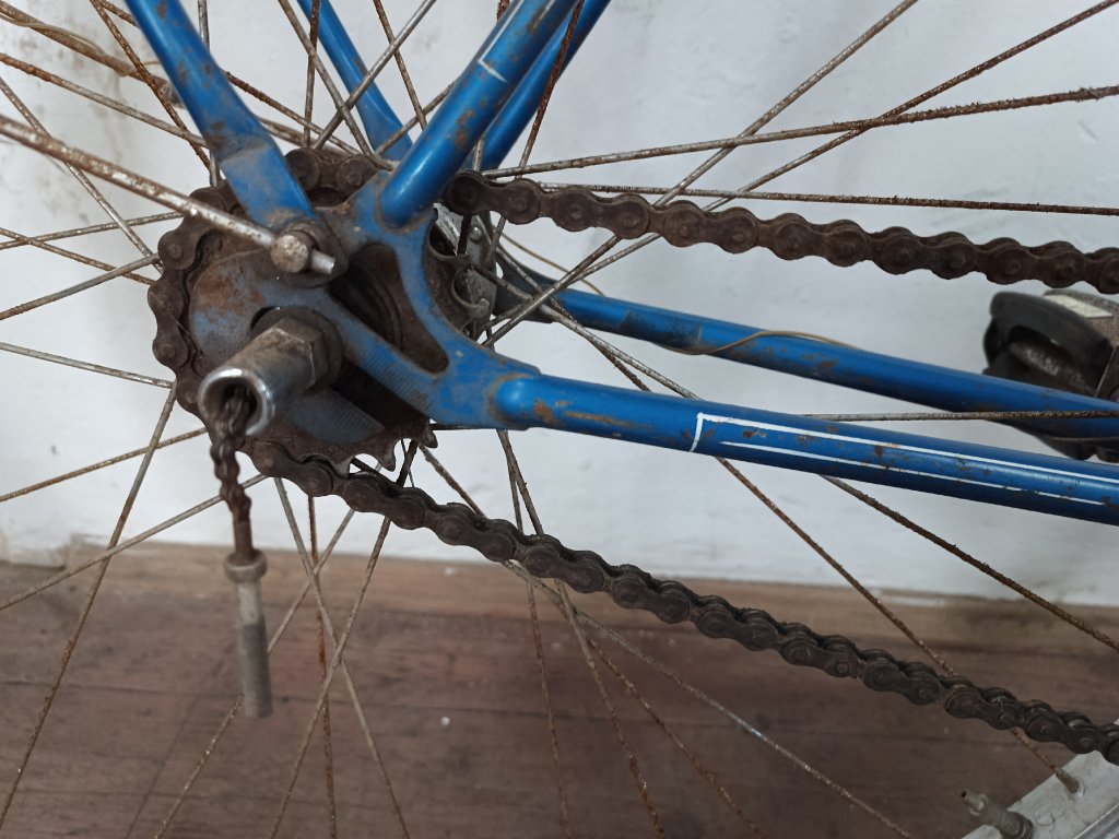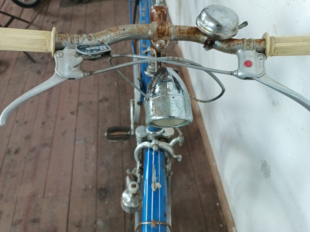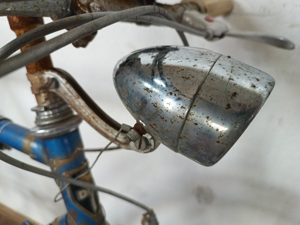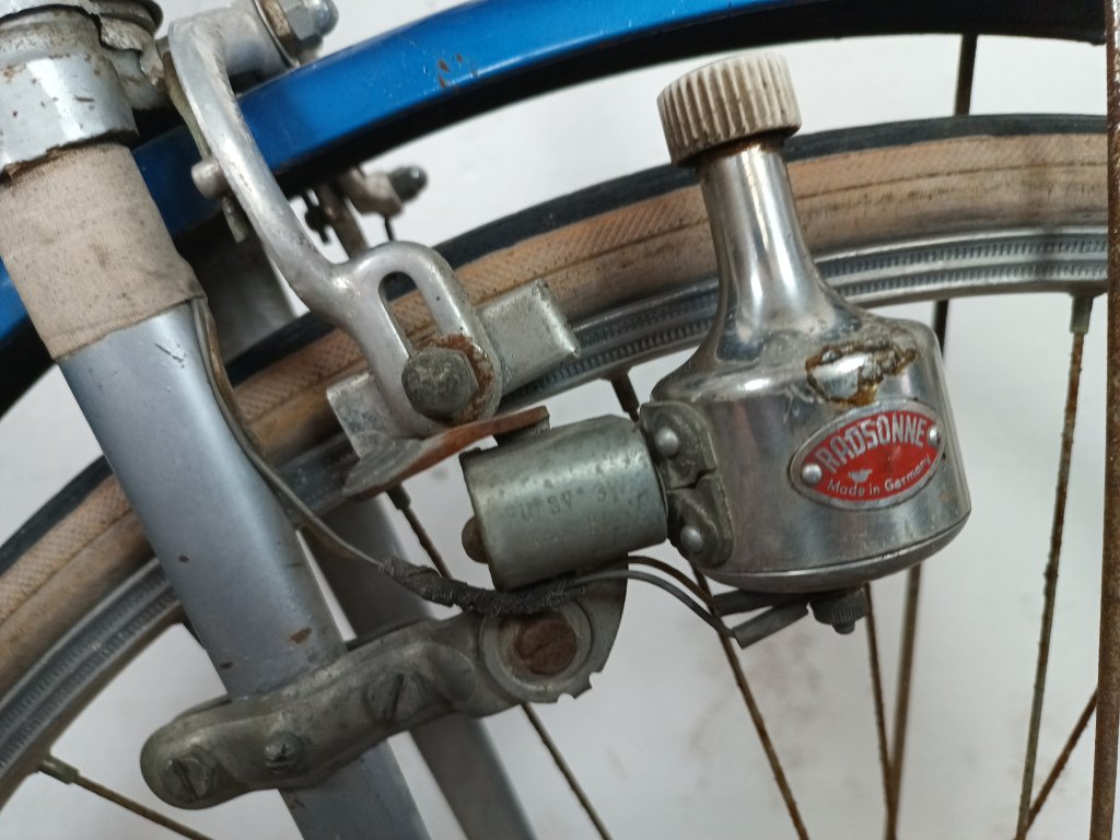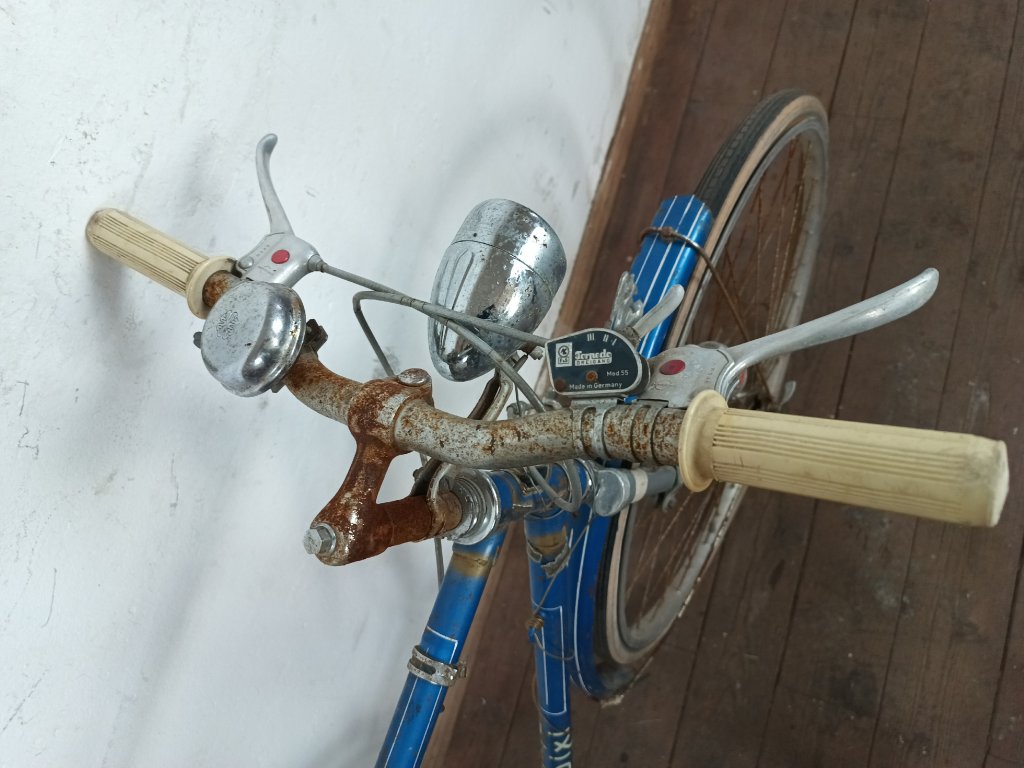 Použité vintage městské kolo německého výrobce s logem Dixi. Kola Dixi se původně vyráběla mezi světovými válkami. Poválečné použití loga Dixi s postavou kentaura bylo zřejmě pouhé kopírování jinými výrobci. Nálezový stav, nepojízdné. Přední vidlice možná nepůvodní. Silnější známky koroze, pro přestavbu je použitelné.