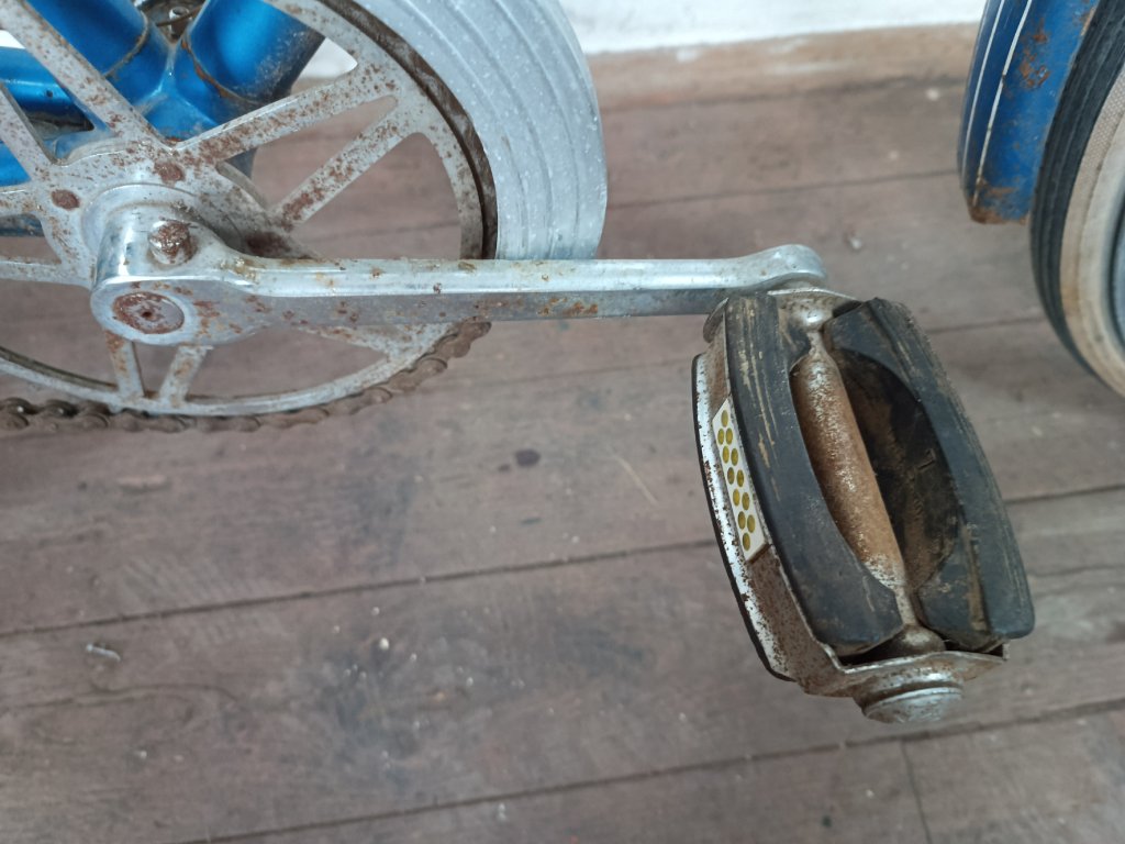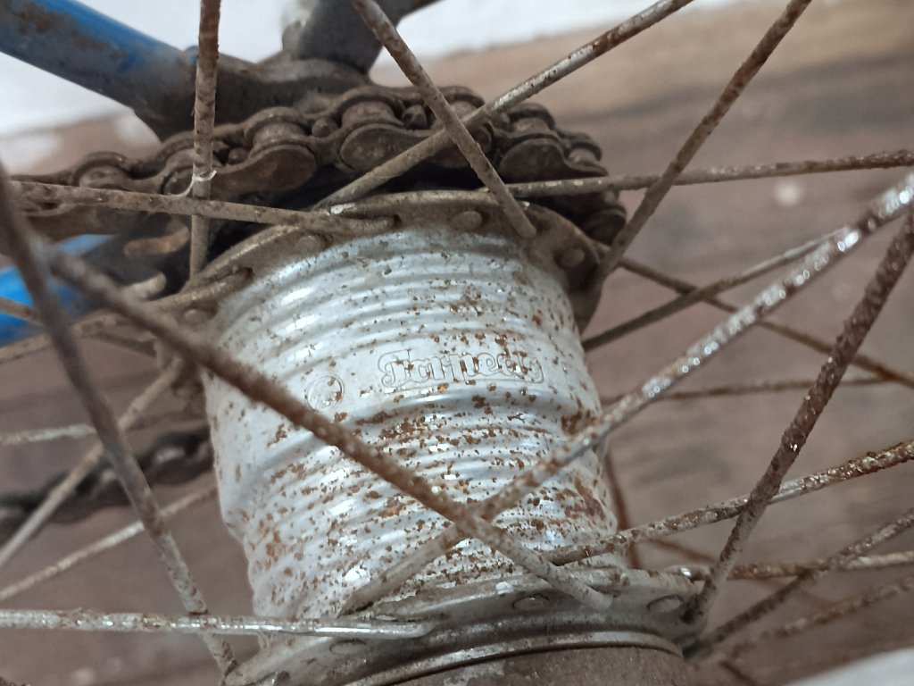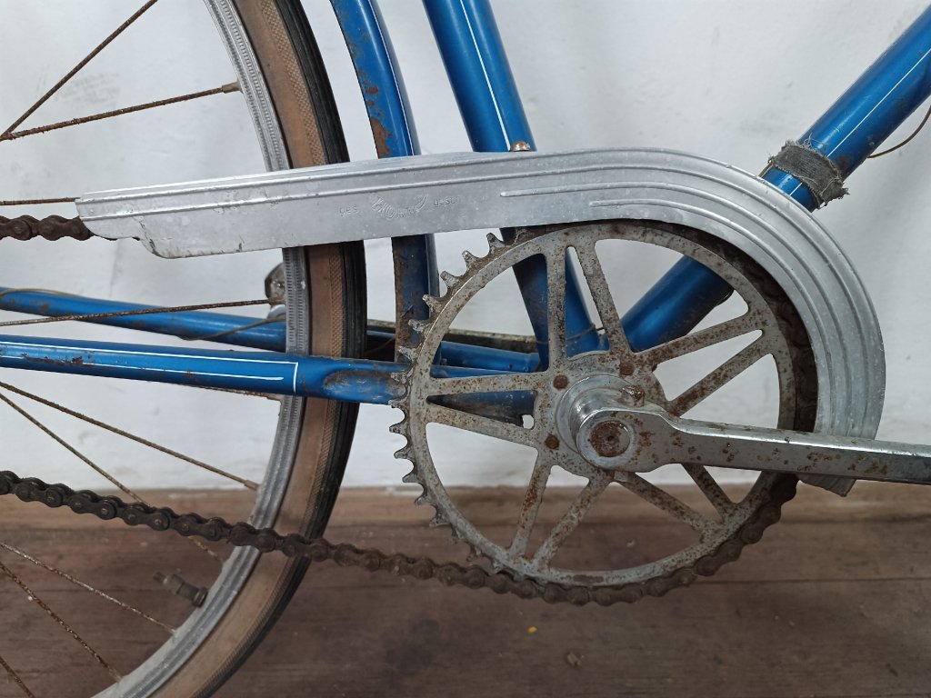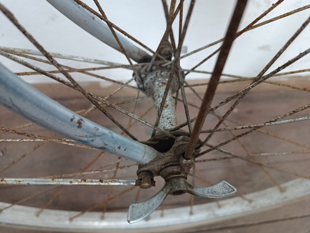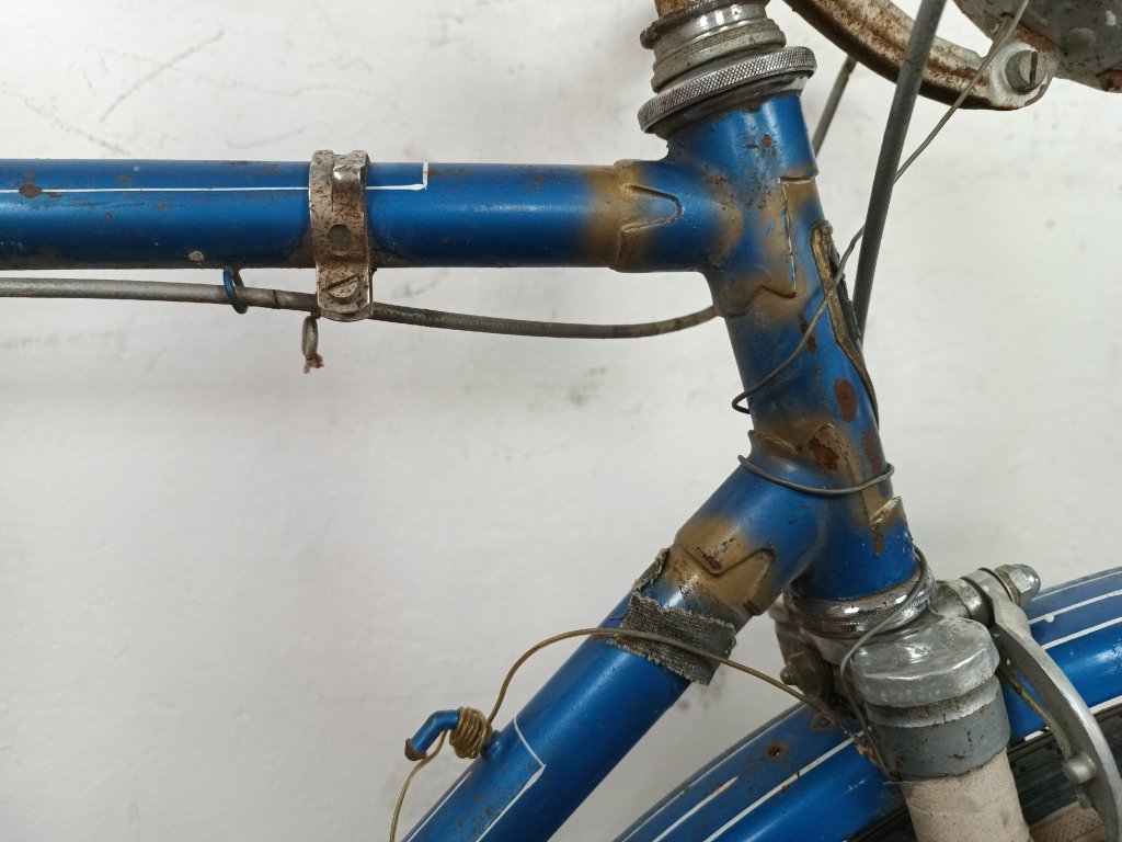 Použité vintage městské kolo německého výrobce s logem Dixi. Kola Dixi se původně vyráběla mezi světovými válkami. Poválečné použití loga Dixi s postavou kentaura bylo zřejmě pouhé kopírování jinými výrobci. Nálezový stav, nepojízdné. Přední vidlice možná nepůvodní. Silnější známky koroze, pro přestavbu je použitelné.