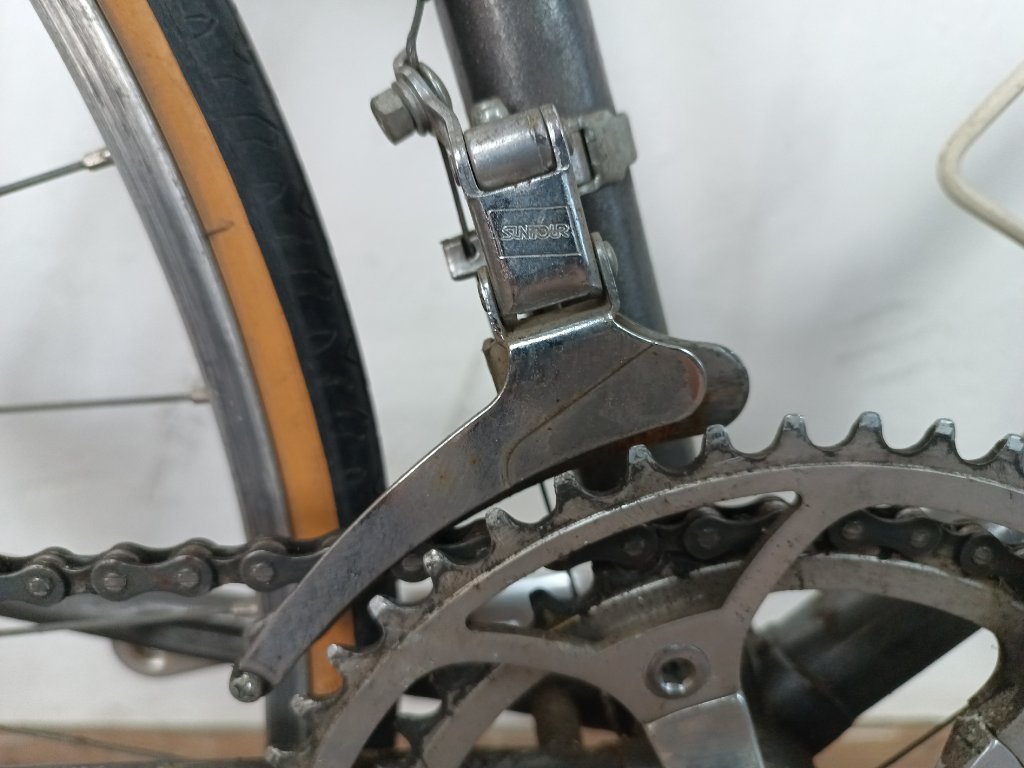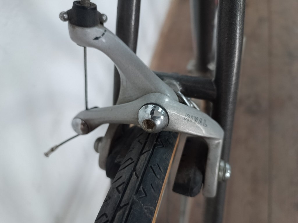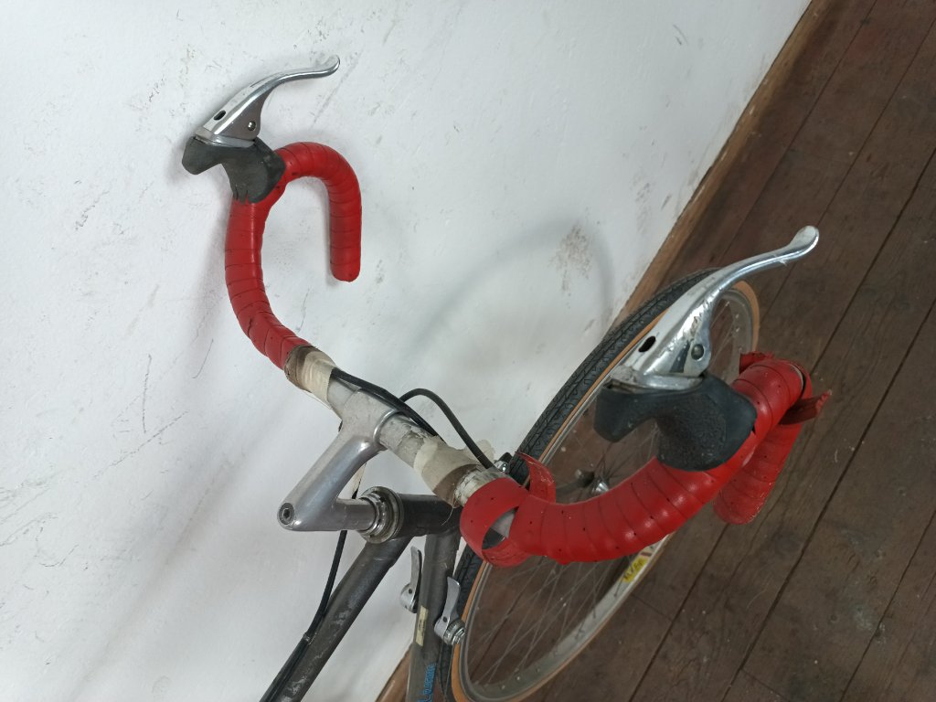 Silniční kolo Eska 28", ocelový rám 54cm, zajímavé komponenty, nálezový stav, aktuálně nepojízdné. Kolo je bez pedálů, má zteřelé pláště a gumy na brzdových pákách. Ráfky mají mírnou osmičku, zadní větší. Vůle v nábojích, ani ve středu není. Řadí solidně. Pravděpodobně ohnutá přední vidlice.