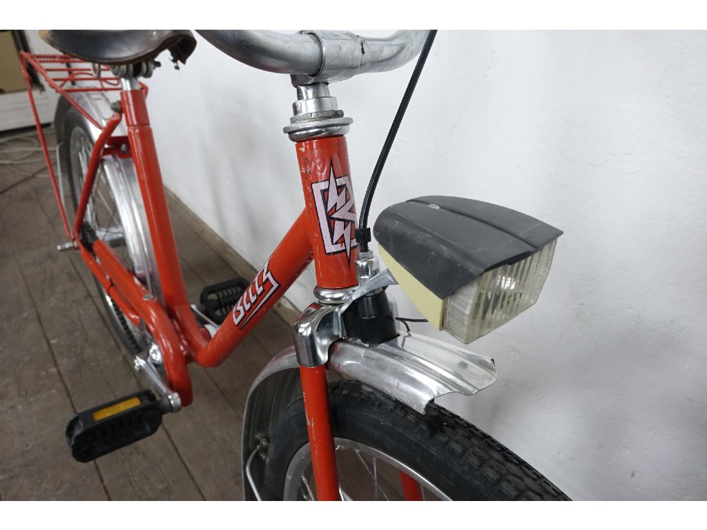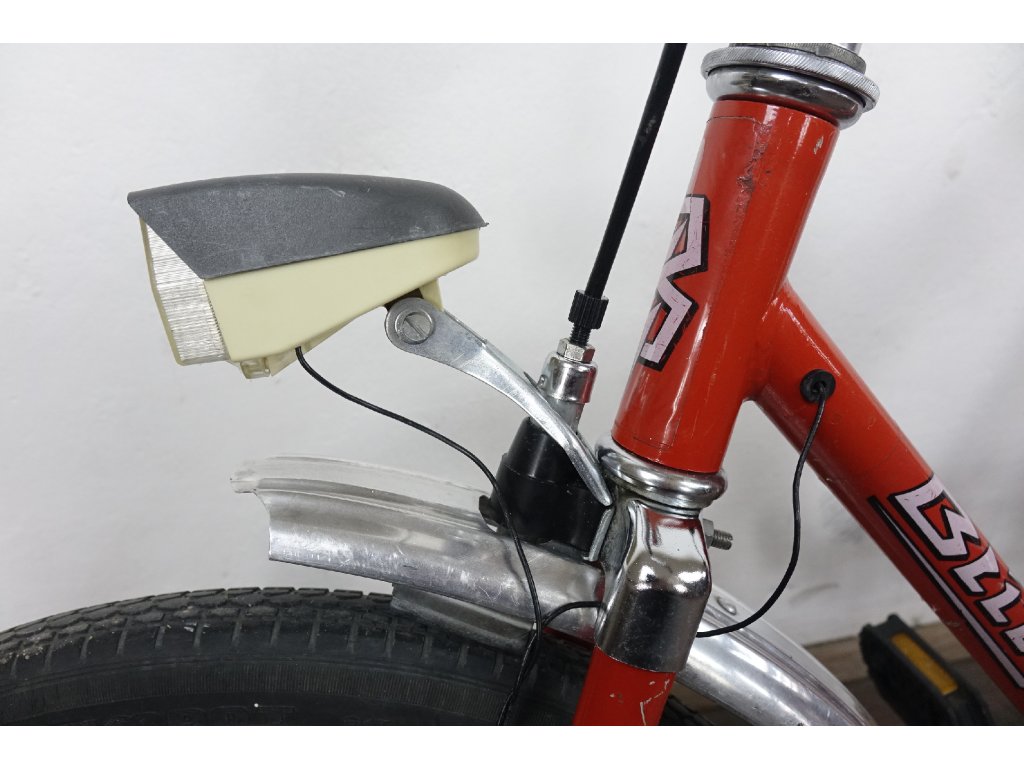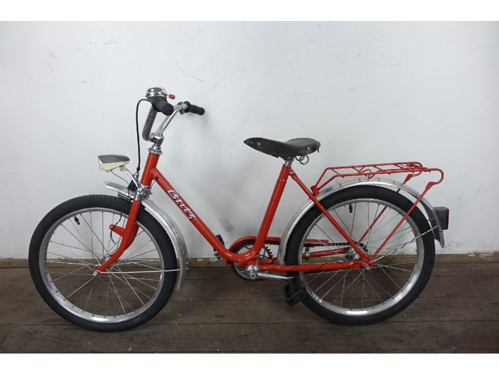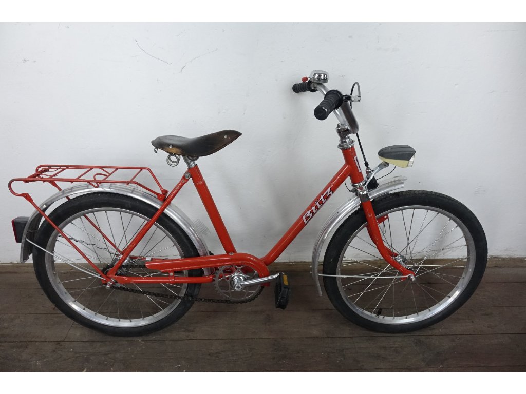 Použité vintage dětské kolo východoněmeckého výrobce Blitz 410 20", z osmdesátých let minulého století, ocelový rám, hliníkové ráfky. Nálezový stav, kolo je velmi zachovalé, bez vůlí, náboje Renak. Není na něm proveden servis, ale je provozu schopné. Chybí dynamo.