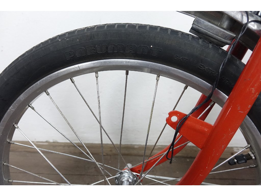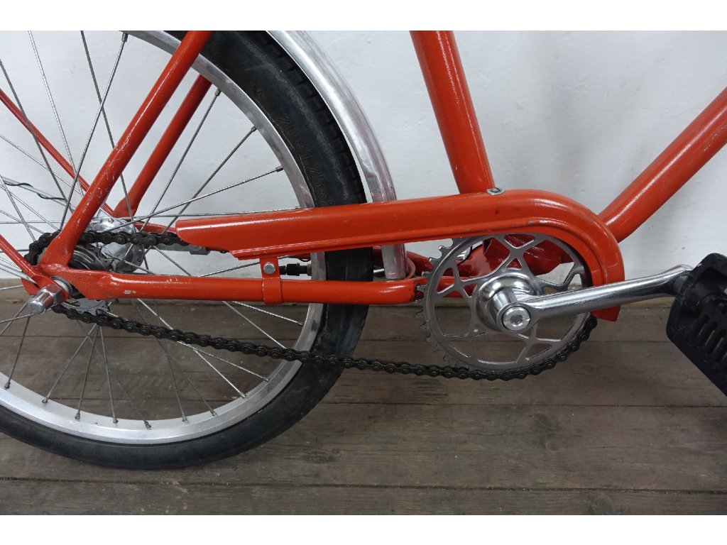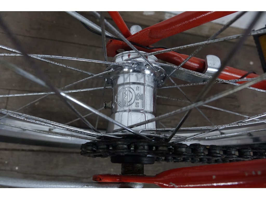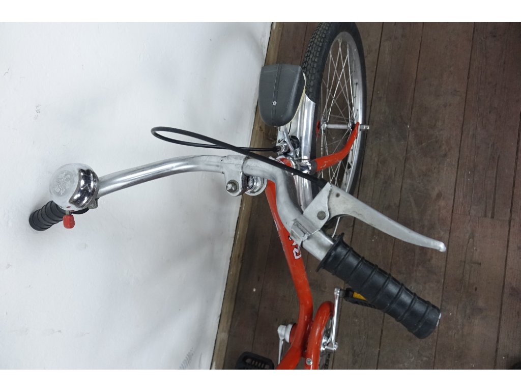 Použité vintage dětské kolo východoněmeckého výrobce Blitz 410 20", z osmdesátých let minulého století, ocelový rám, hliníkové ráfky. Nálezový stav, kolo je velmi zachovalé, bez vůlí, náboje Renak. Není na něm proveden servis, ale je provozu schopné. Chybí dynamo.