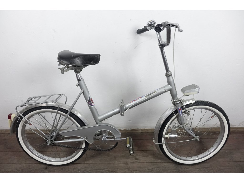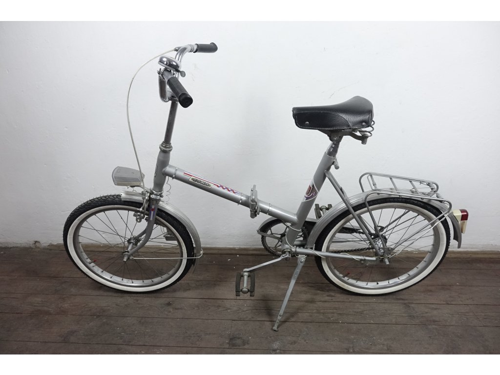 Použité krásné vintage skládací kolo ESKA 20". Kolo je servisováno a je plně pojízdné, světla funkční. Nové pláště.