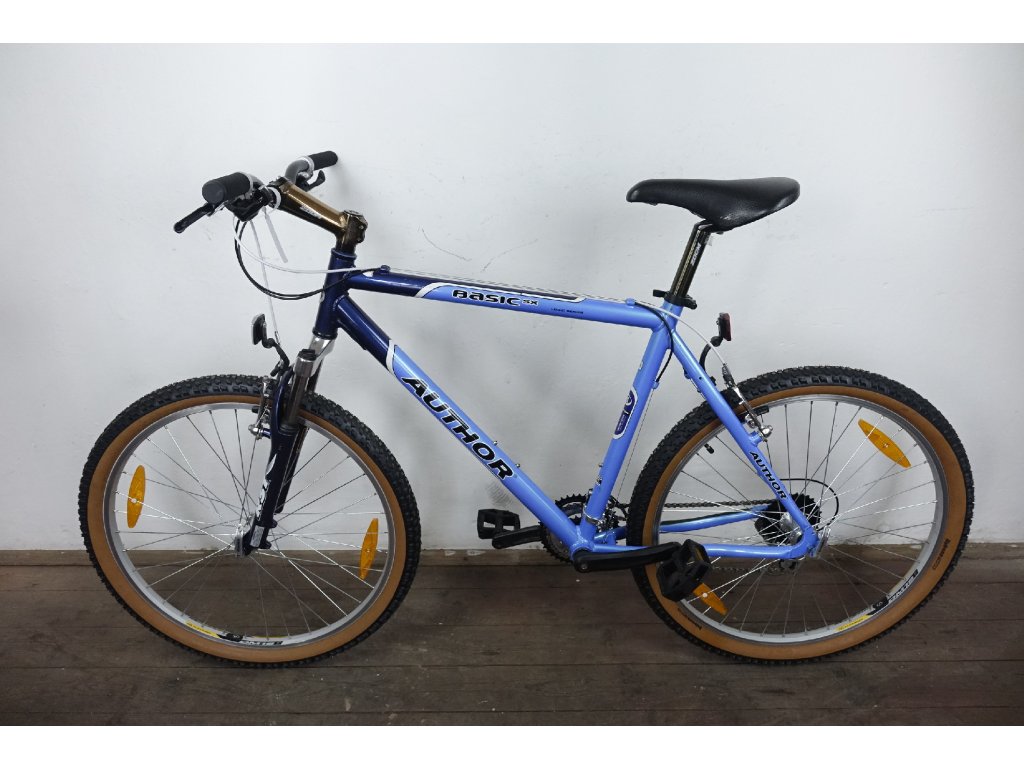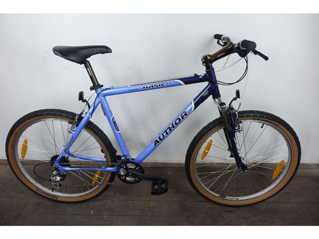 Použité horské kolo Author Basic SX 26", hliníkový rám 21", repasováno (proveden kompletní servis), plně pojízdné. Nové bowdeny, lanka, pláště, pedály, gripy, vodítka lanek.