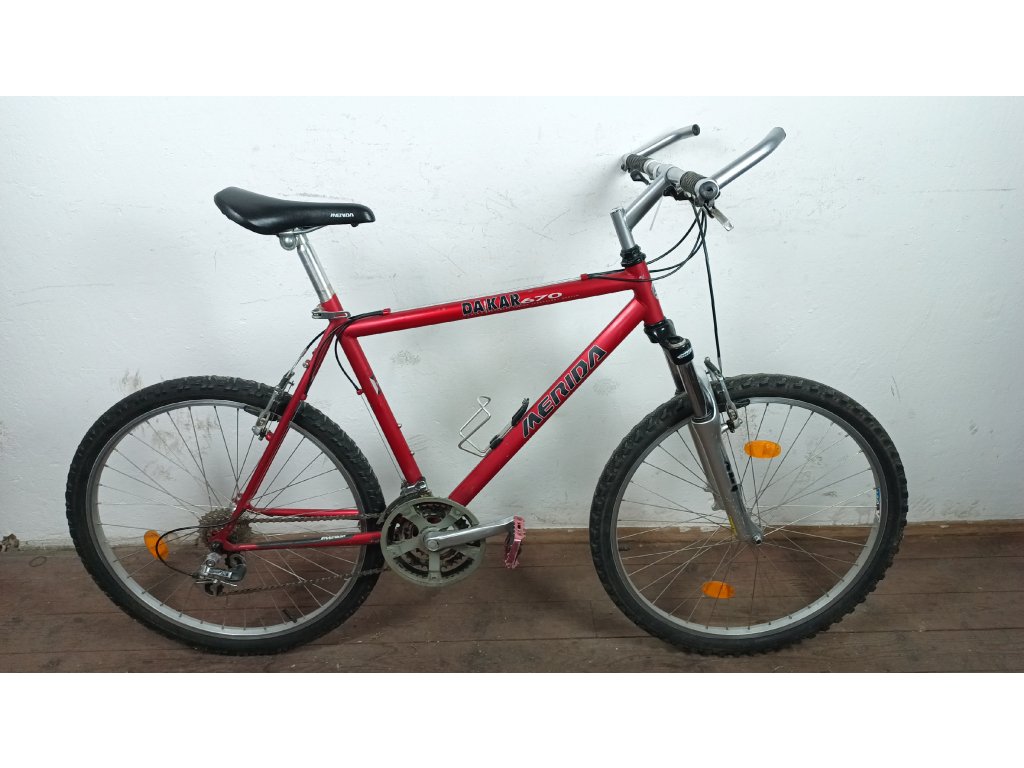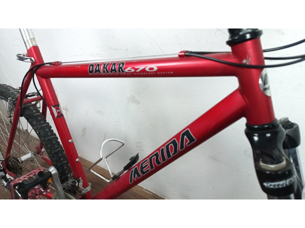 Použité horské kolo Merida Dakar 24'', ocelový rám 20,5", nálezový, velmi hezký stav, seřízeno, pojízdné, vše funkční.
