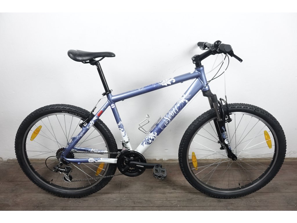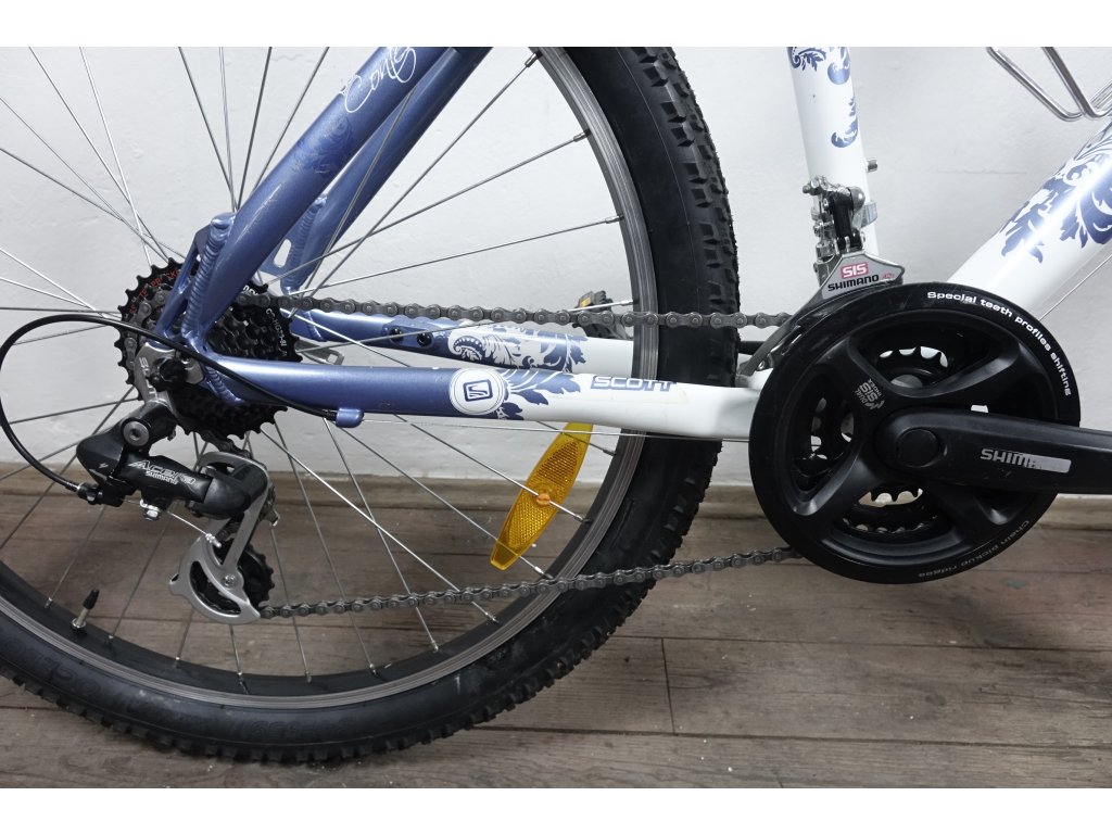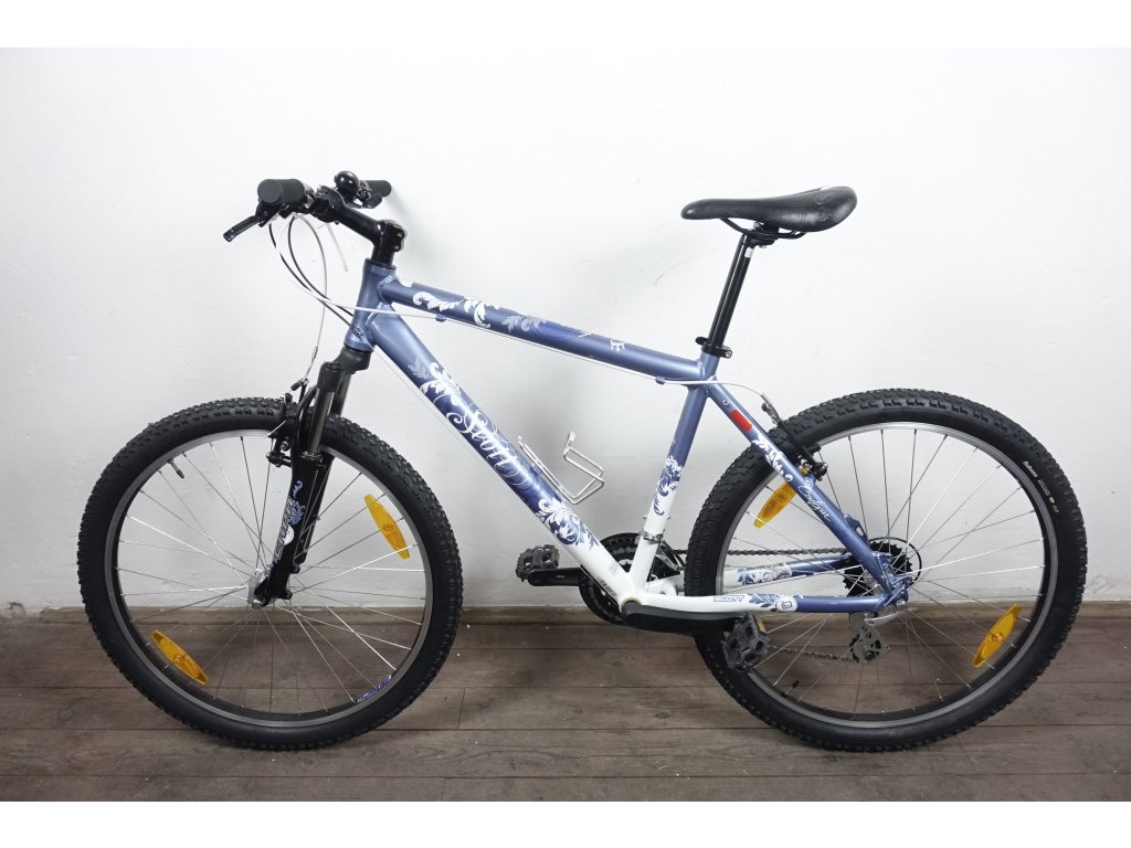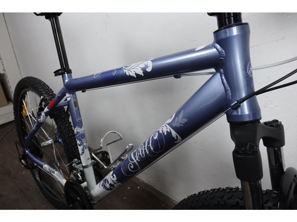 Použité horské kolo amerického výrobce Scott Contessa 26", hliníkový rám 18", repasováno (proveden kompletní servis), plně pojízdné. Nová lanka, bowdeny, pláště, brzdové špalky, gripy.