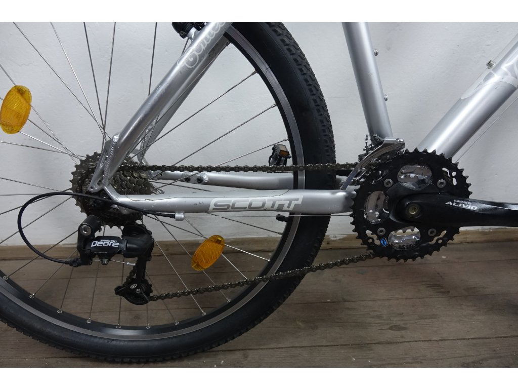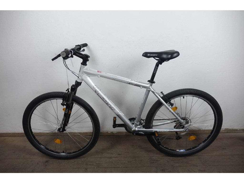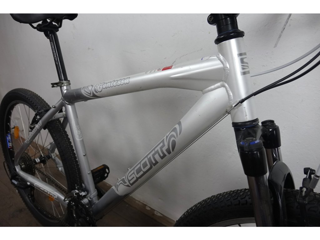 Použité horské kolo amerického výrobce Scott Contessa 30 26", hliníkový rám 18". Repasováno (proveden kompletní servis), plně pojízdné. Nová lanka, bowdeny, pláště, řetěz, vodítka.