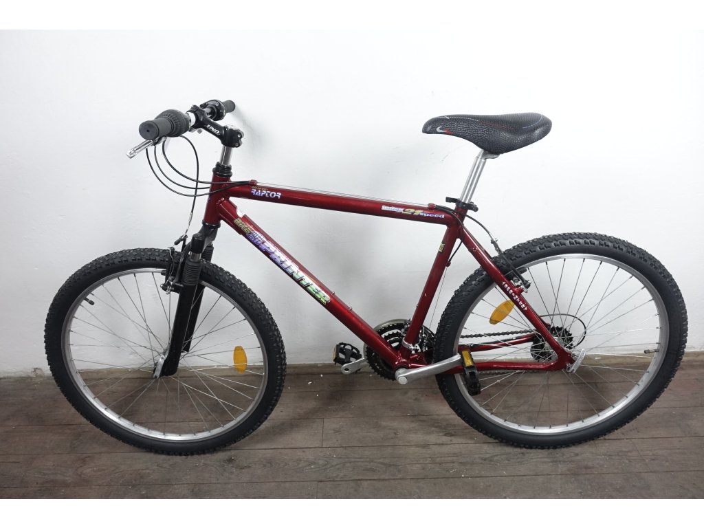 Použité horské kolo českého výrobce Sprinter Raptor 26'', hliníkový rám 19". Repasováno (proveden kompletní servis), plně pojízdné. Nová lanka, bowdeny, pláště, gripy.