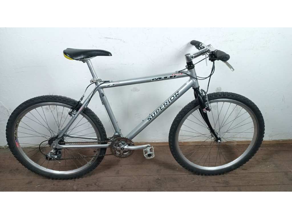 Použité horské kolo Superior MTB line 26", hliníkový rám 19", repasováno (proveden kompletní servis), plně pojízdné. Nová lanka, bowdeny, brzdové špalky.