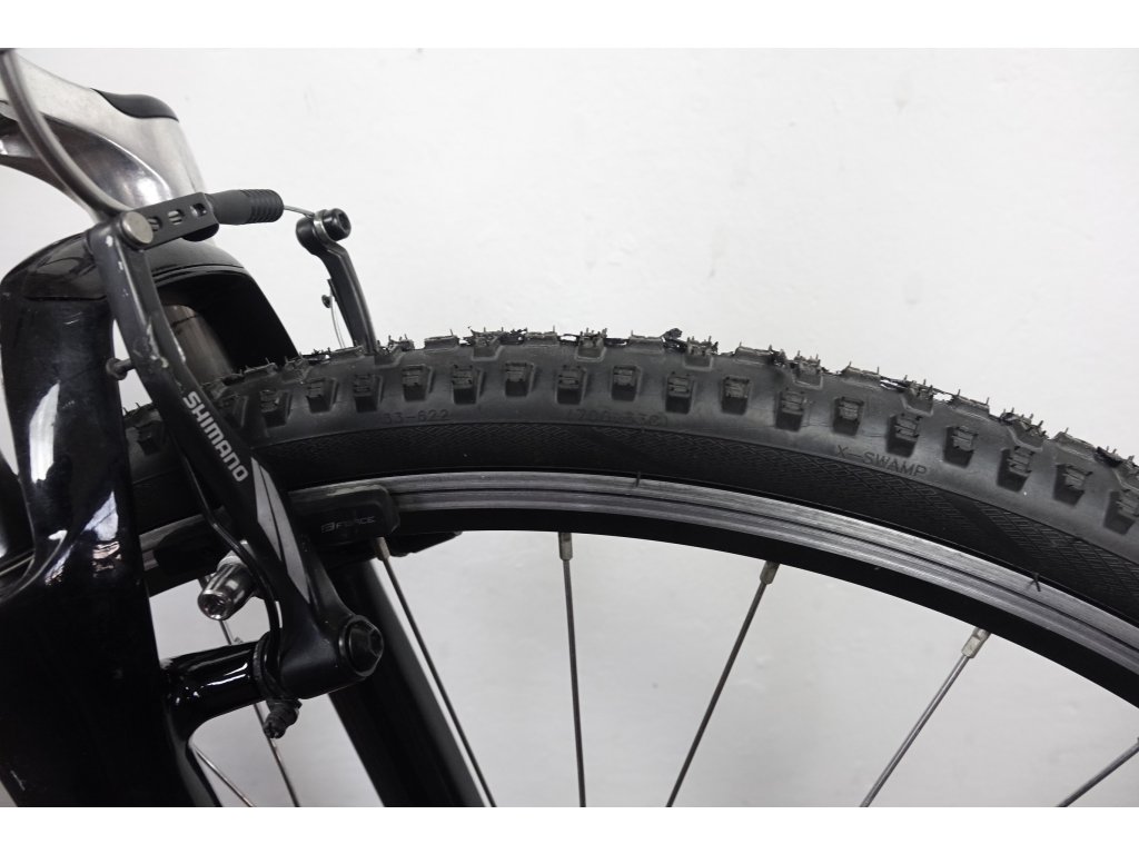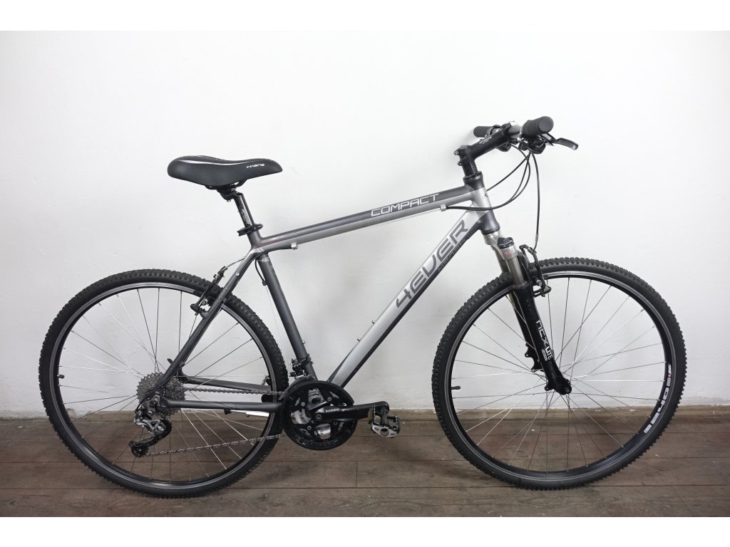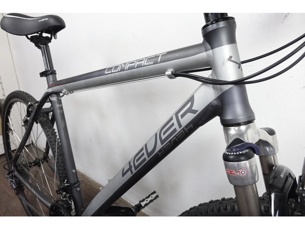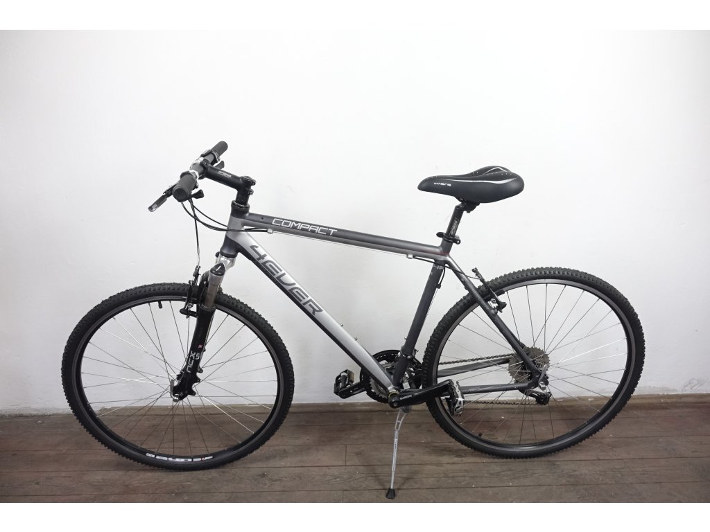Použité trekové kolo českého výrobce 4Ever Compact 28'', hliníkový rám 21", komponenty Shimano Deore, 27 rychlostí. Repasováno (proveden kompletní servis), plně pojízdné. Nové pláště, bowdeny, lanka, gripy, vodítka lanek, sedlo.