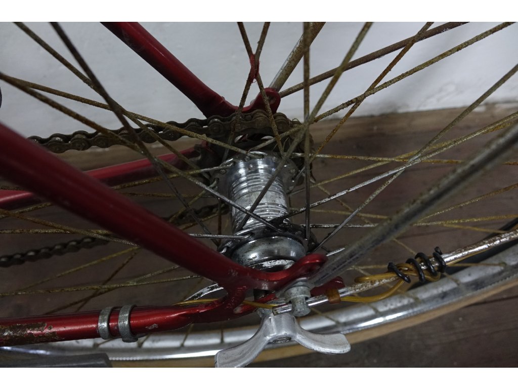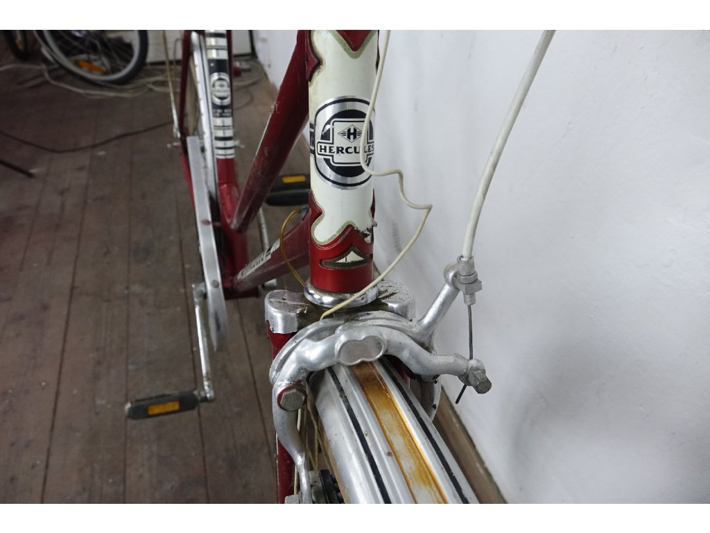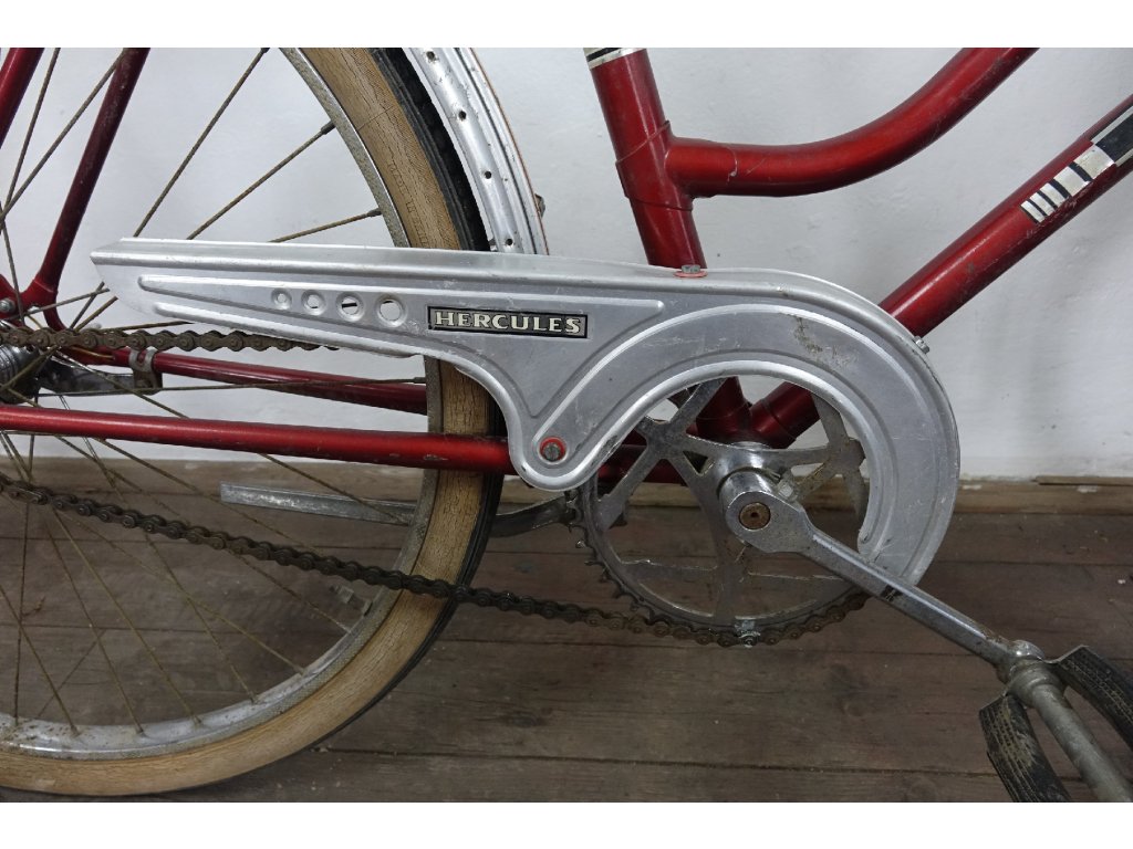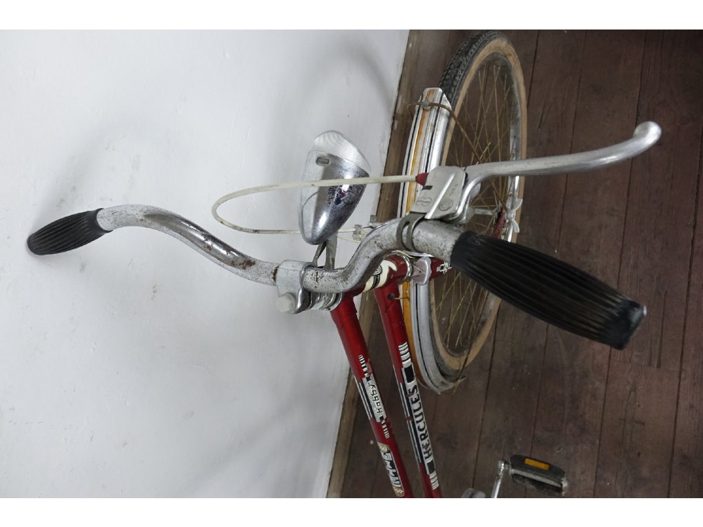 Použité dámské městské kolo německého výrobce Hercules Hobby 26". Nálezový stav, nepojízdné, známky koroze, pláště zteřelé.