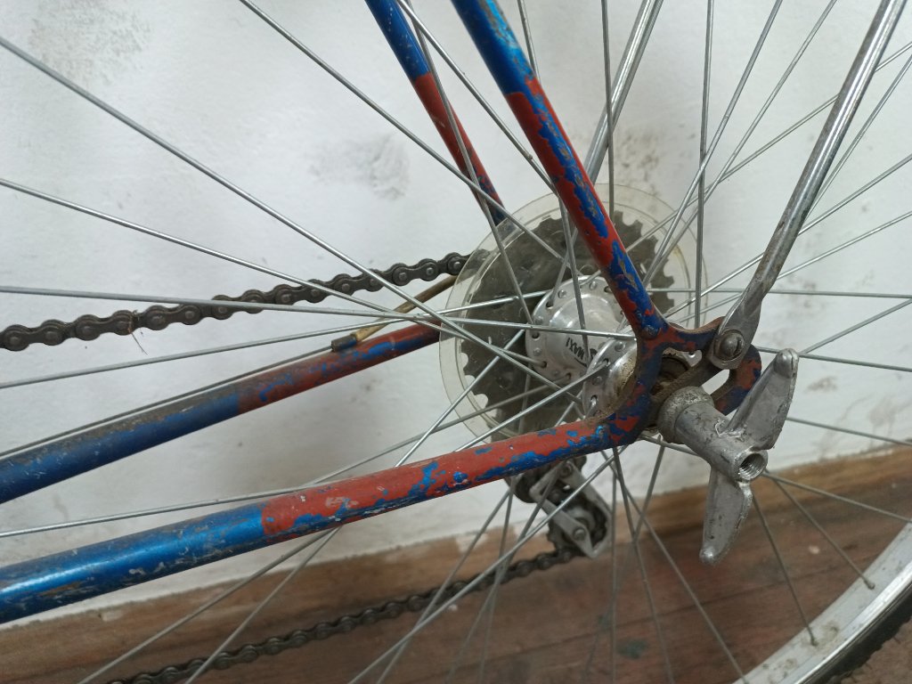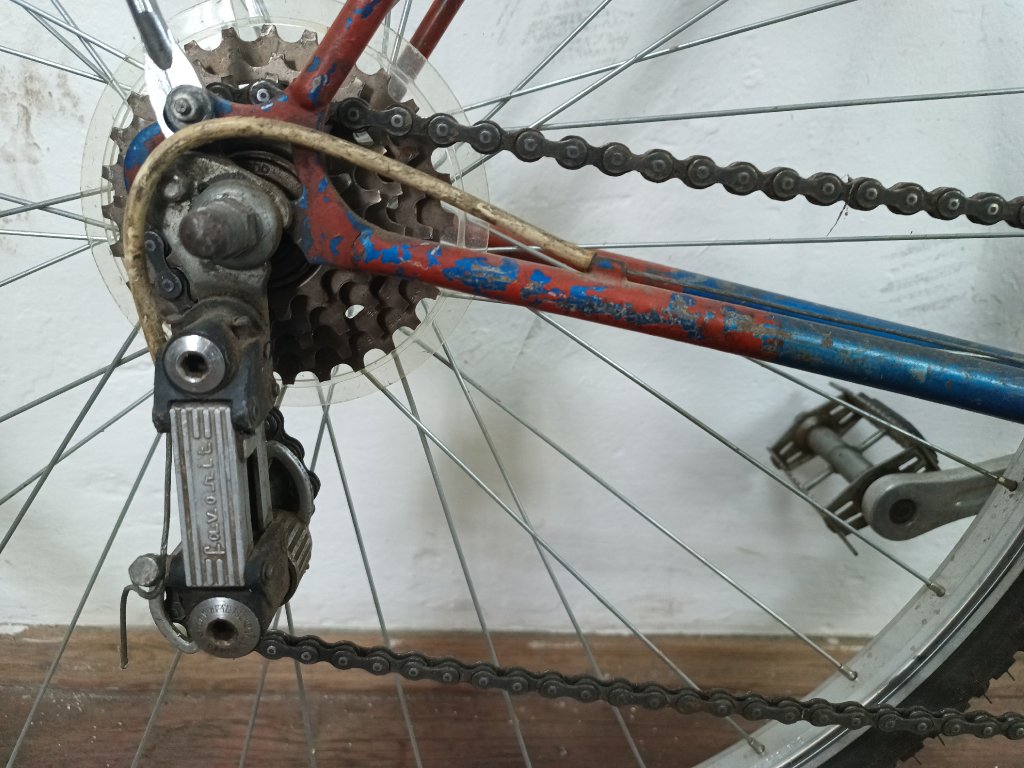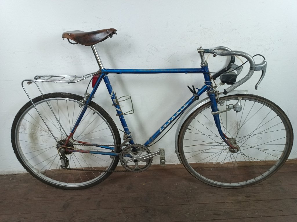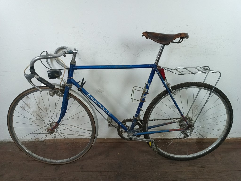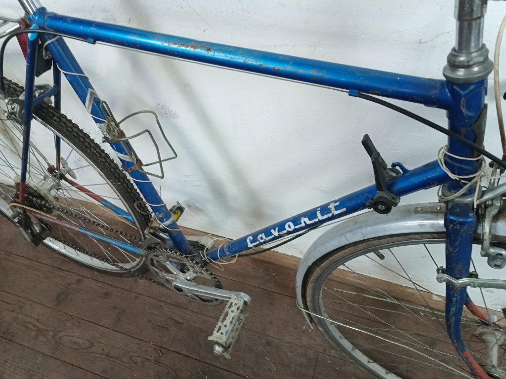 Použité historické silniční kolo Favorit 28", rám 58cm, nekované patky, nálezový stav, nepojízdné, nepůvodní komponenty viz foto.