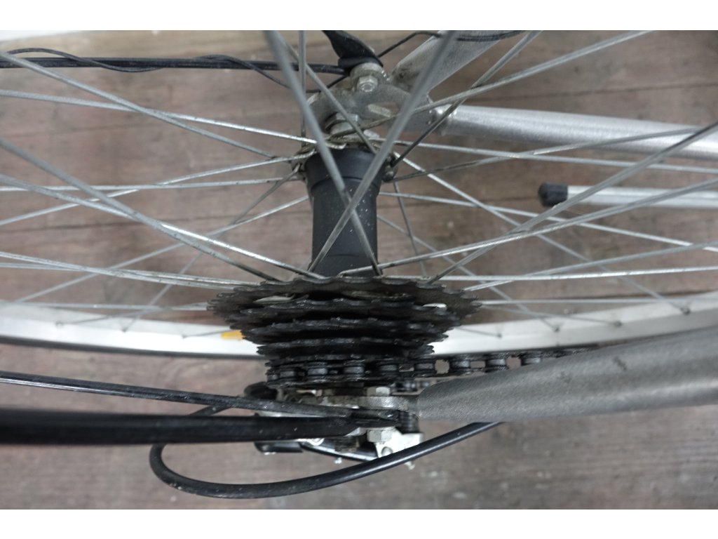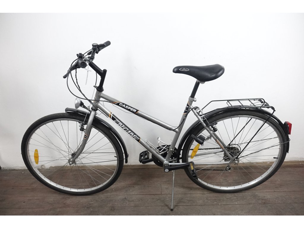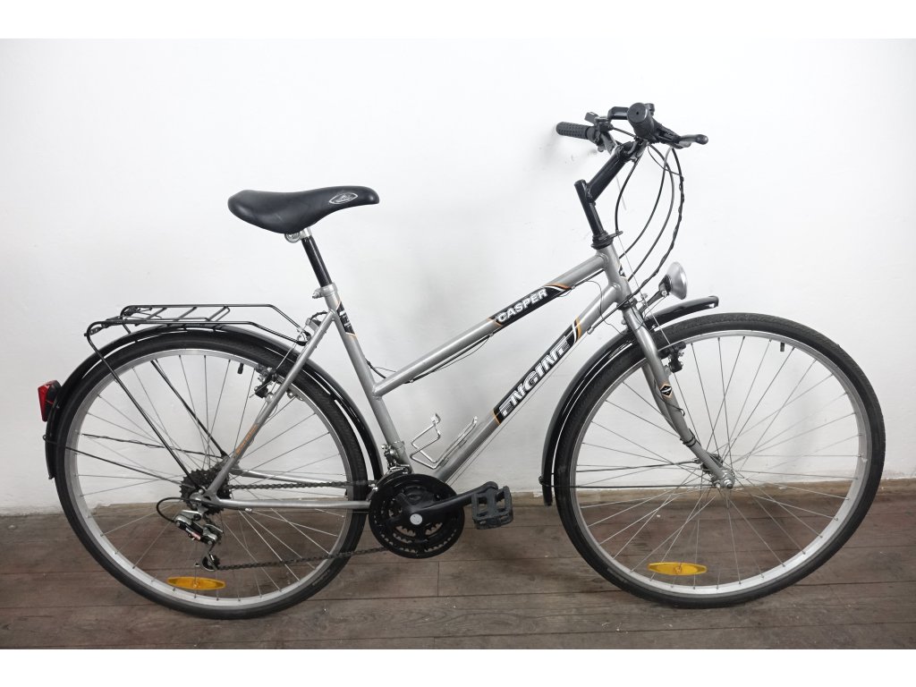 Použité dámské trekingové kolo Engine Casper 28'', ocelový rám 20". Na kole byl proveden základní servis, je pojízdné, svítí.