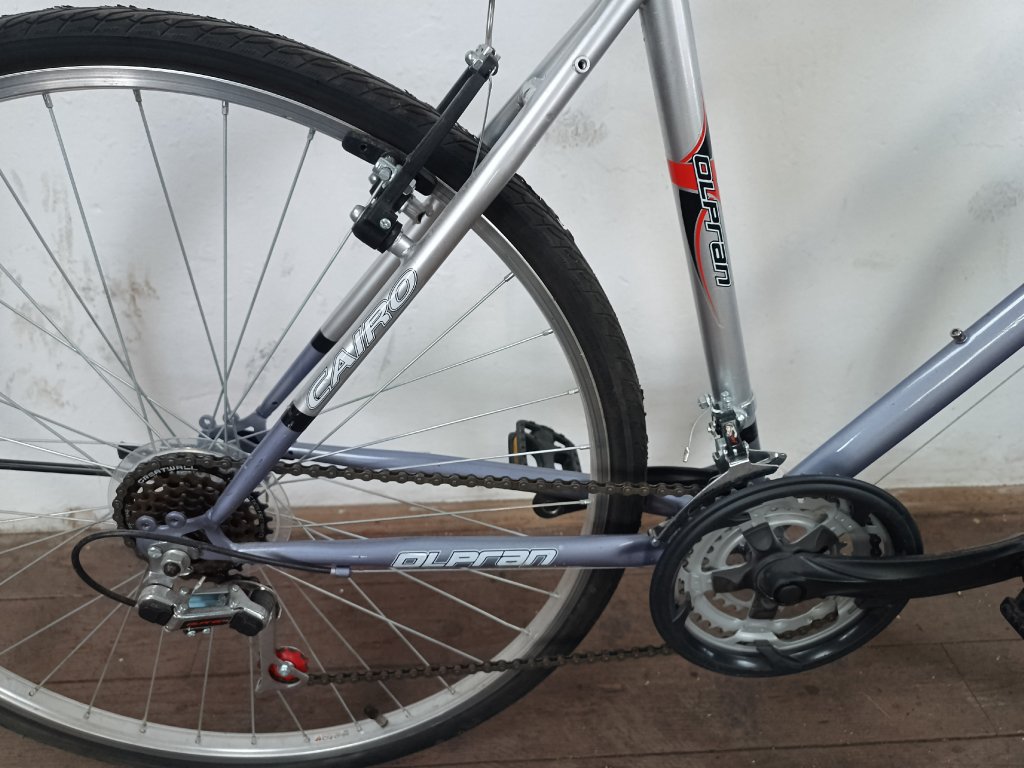 Použité trekingové kolo českého výrobce Olpran Cairo 28", ocelový rám 19". Nálezový stav, kolo je bez servisu, řazení v pořádku, zadní náboj má mírnou vůli. Kolo bylo pravděpodobně pouze minimálně používáno. Kvalitou není na vysoké úrovni, ale je pojízdné.