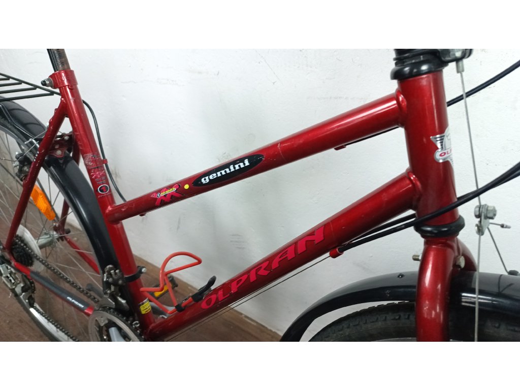 Použité dámské trekingové kolo českého výrobce Olpran Gemini 28'', ocelový rám 19,5", nálezový stav, bez servisu, pojízdné. Zteřelé pláště, ale drží. Jinak vše funkční.
