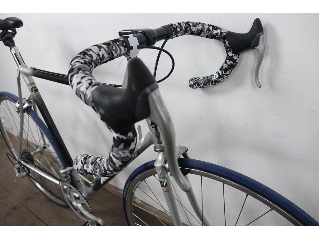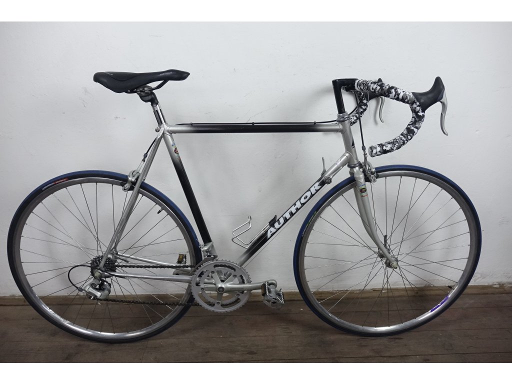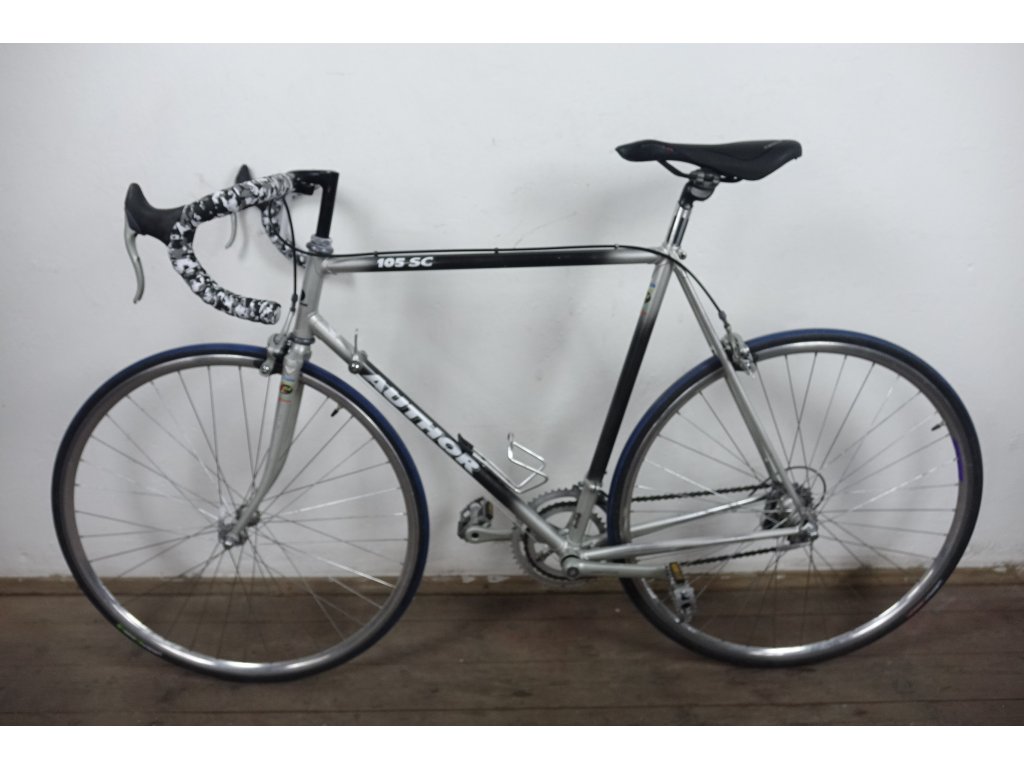 Použité vintage silniční kolo Šírer 28" s nálepkami Author, ocelový rám 58 cm, kompletní osazení Shimano 105, ráfky Campagnolo, 16 rychlostí, repasováno (proveden kompletní servis), plně pojízdné. Nová lanka, bowdeny, omotávka.