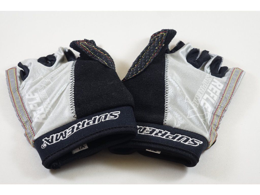 Nepoužité rukavice na jízdní kolo slovenského výrobce Suprema Reflex. Dlaně z přírodní kůže. Reflexní proužek na hřbetu.