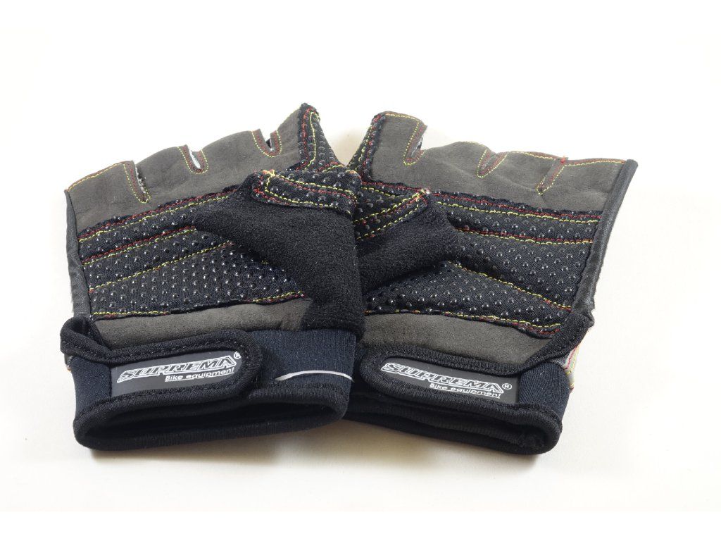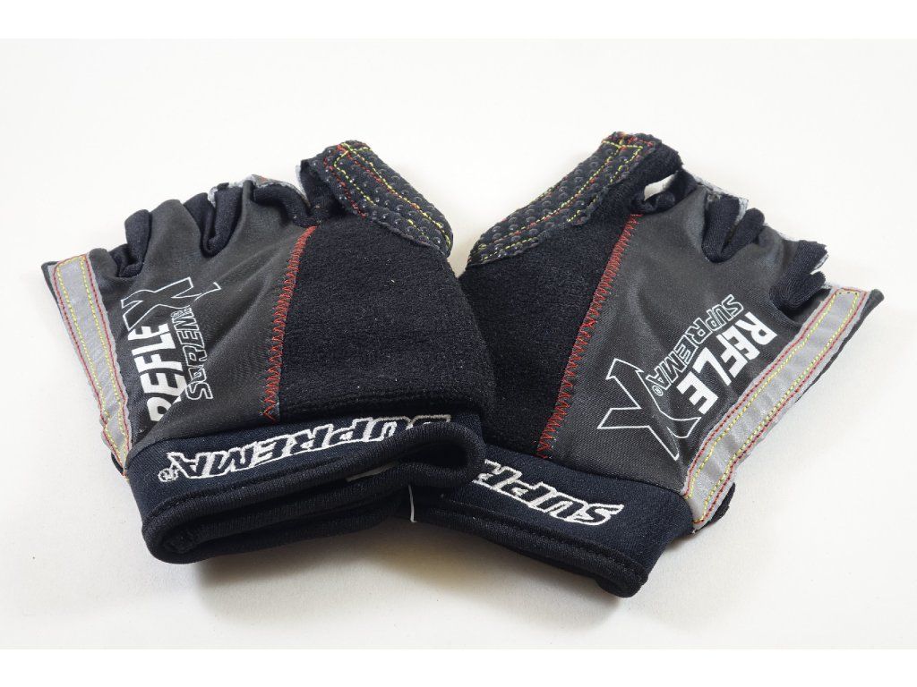 Nepoužité rukavice na jízdní kolo slovenského výrobce Suprema Reflex. Dlaně z přírodní kůže. Reflexní proužek na hřbetu.